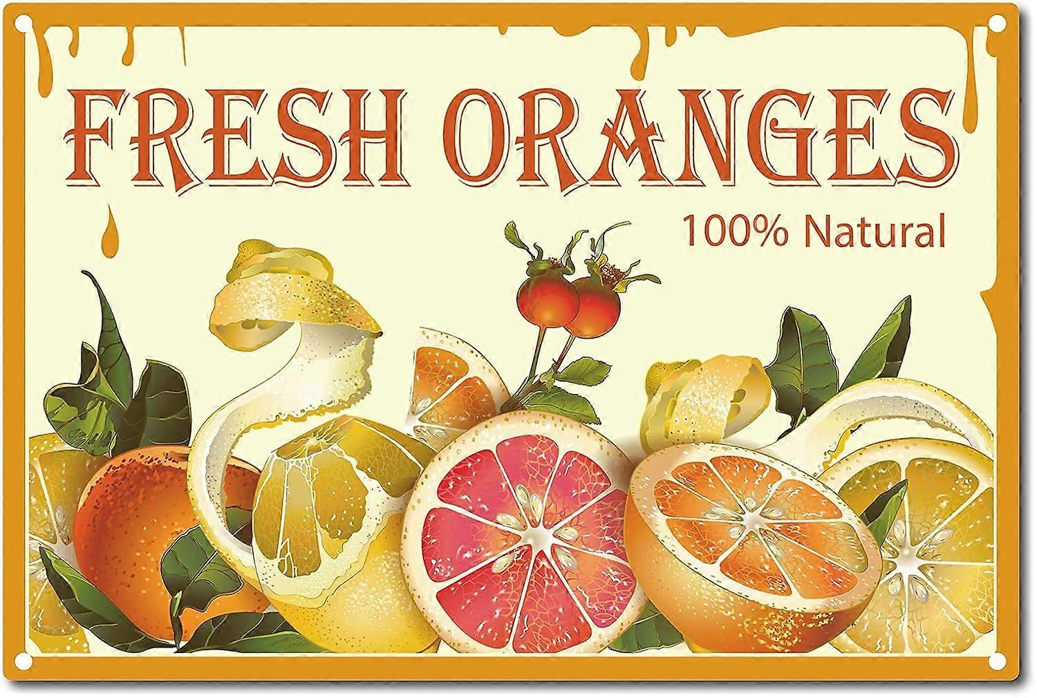 Fresh Oranges Tin Sign Vintage Metal Tin Sign Retro Iron Poster Painting for Home Bar Cafe Kitchen Restaurant Wall Decor 8 x 12 Inch