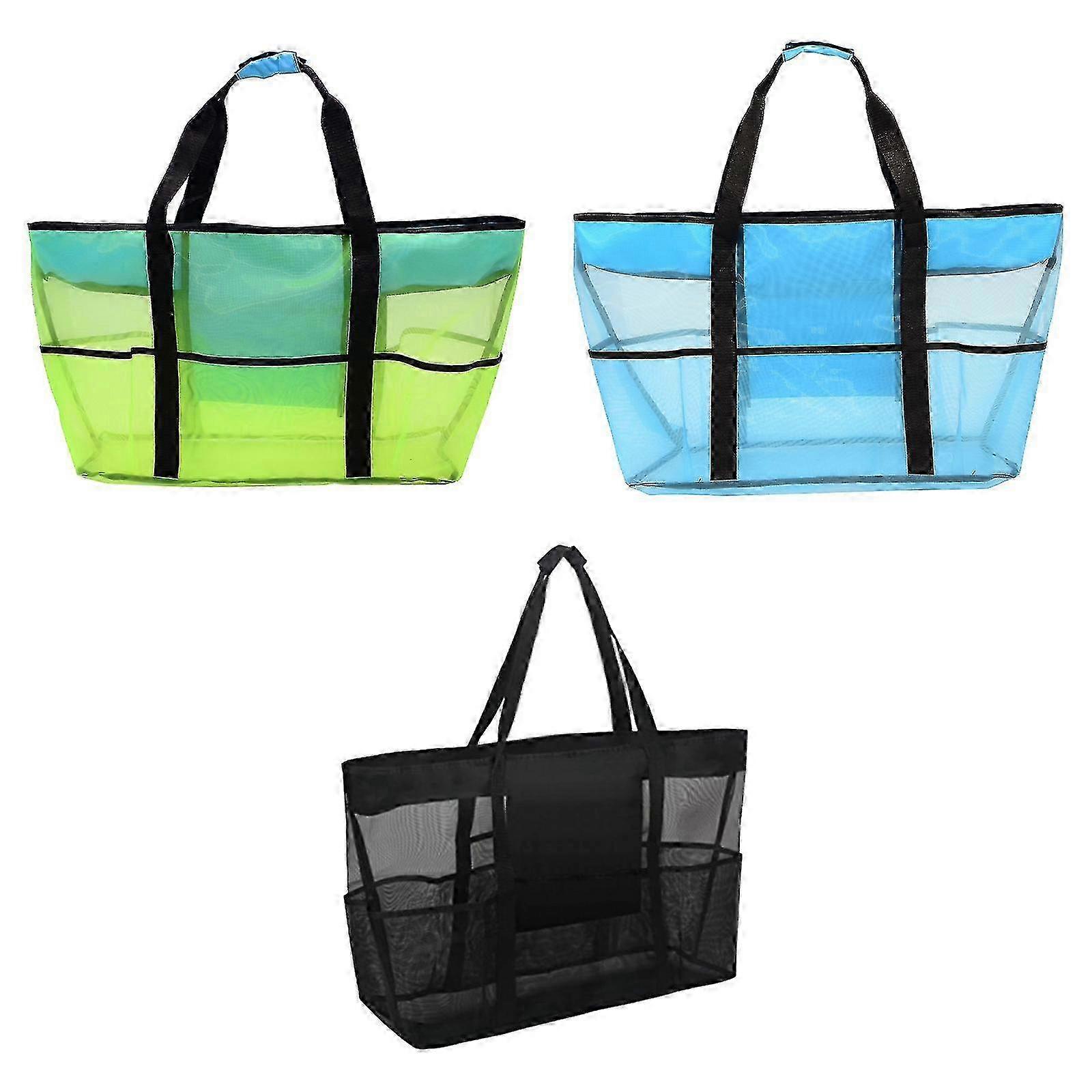 Large Mesh Beach Bag with 8 Pockets for Travel, Picnic & Shopping - Blue