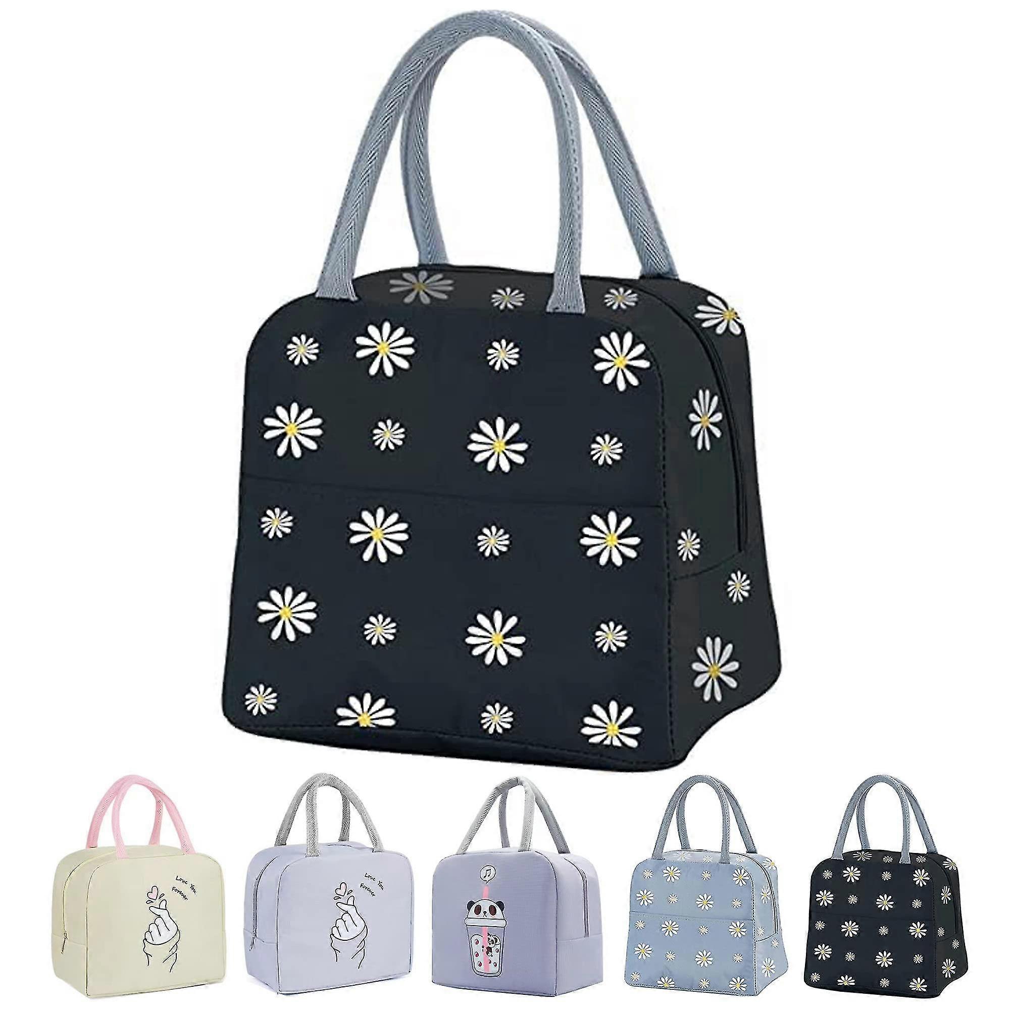 Lunch Bag Portable For Travel,picnic,school (black Daisy)