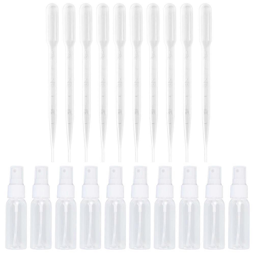 This empty portable spray bottle is made of , which can be easily put in your pocket or your bag. Suitable to hold makeup liquid, perfumes, and cleaning products. It is a must for your trip. Lightweight to carry. Perfect for travel, vacation, camping and daily life. Features - ColorTransparent - Material: Plastic. - Size: About 10.50X2.80X2.80cm/4.13X1.10X1.10inch. - Capacity: 30ml. - Perfect to contain water, perfume, and some cleaning liquid. - Great to put in backpack, bag, toiletry bag, pocket, and more. - Lightweight to carry. Perfect for travel, vacation, camping and daily life. - Made of material, it is odorless and durable, reusable and refillable. - Leak-proof design, the bottle features a tight seal that will prevent any liquids from dripping out. Package list: 20 x spray bottles 20 x droppers