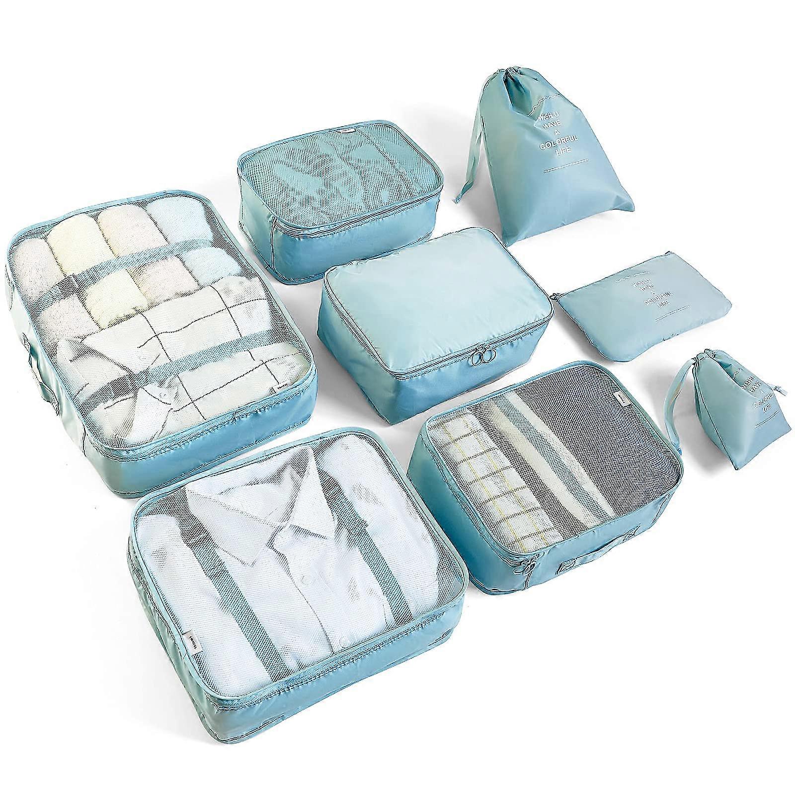 Travel Organiser, 8 Pack Travel Packing Cubes for Travel, Waterproof Polyester Storage, Luggage, Travel Storage Bags, Clothes, Suitcase, Light Blue