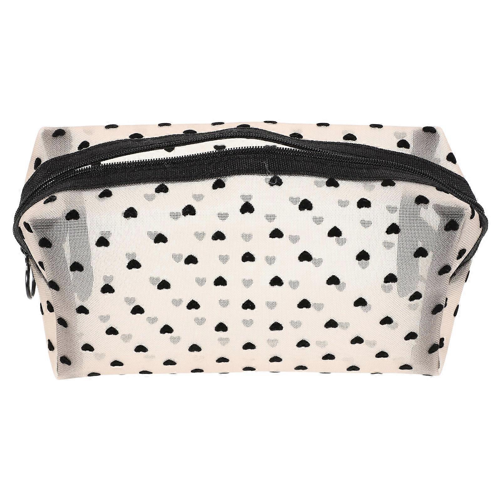Travel Makeup Accessories Cosmetic Storage Heart Mesh Toiletry Bag Portable for Women Bathroom Use Beige 18.50X10.50X7.40CM 1Pack