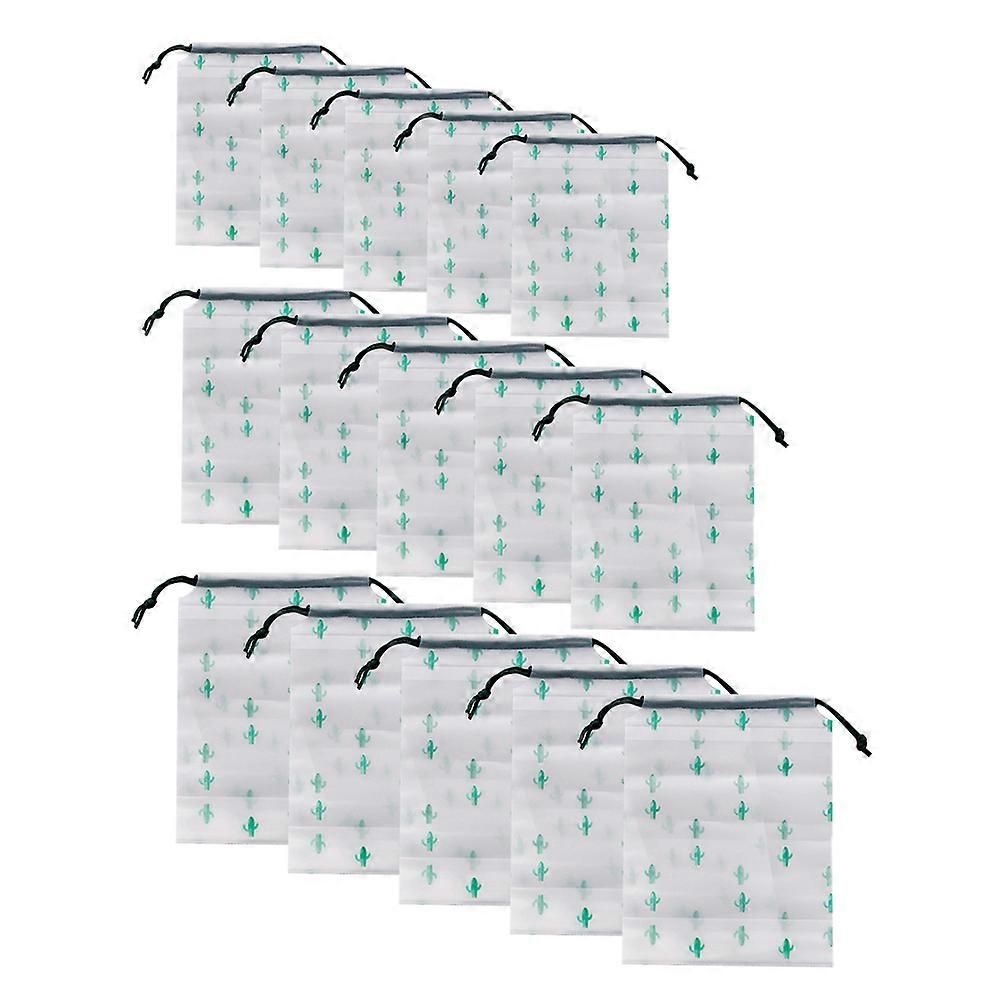 Travel Storage Bags Transparent Bag Cactus Printing Drawstring Pouch Family Use 15Pcs