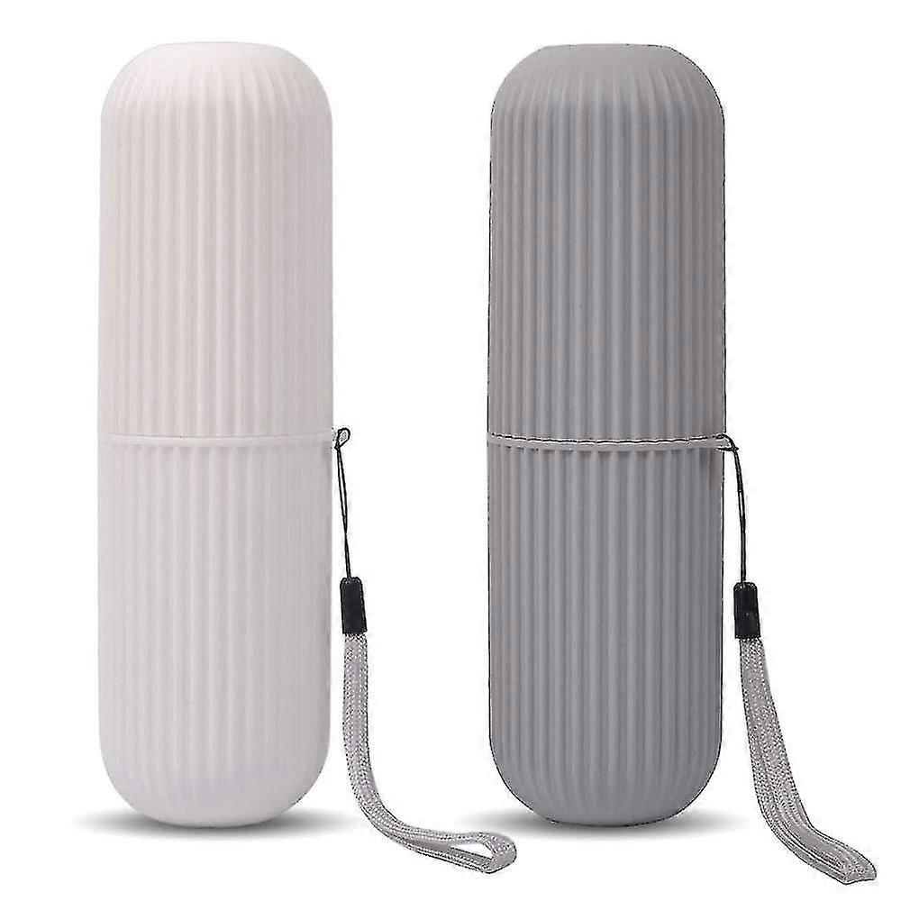Travel Toothbrush Case And Carrier, 2 Pcs Portable Business Trips Wash Cup Holder Organizer For Trips And Daily Use (grey+white)