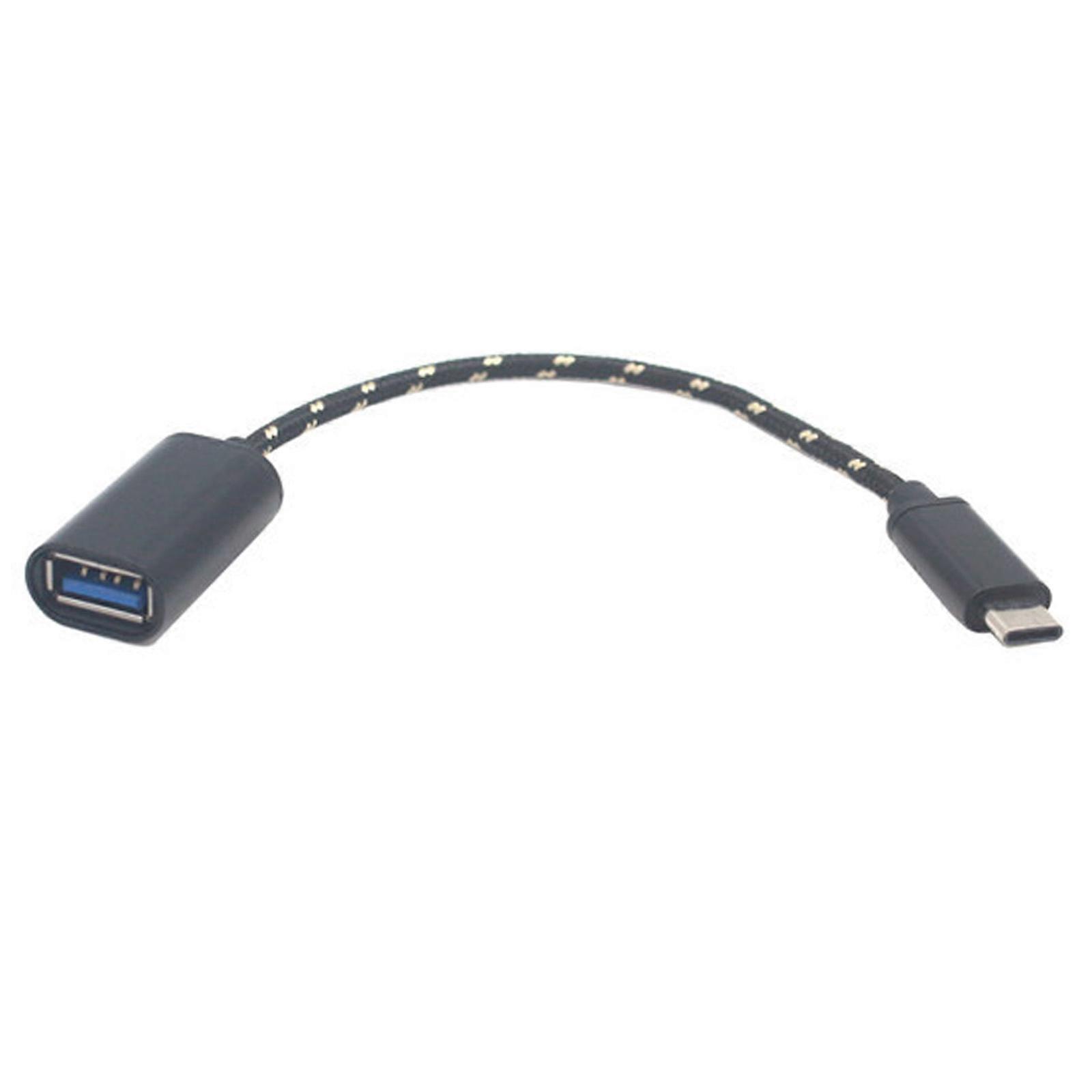 Convenient USB Cable for Travel Fast TypeC to USB2.0 OTG Adapters Nylon USB Data Transfer Cable 7inch for Smartphones Black