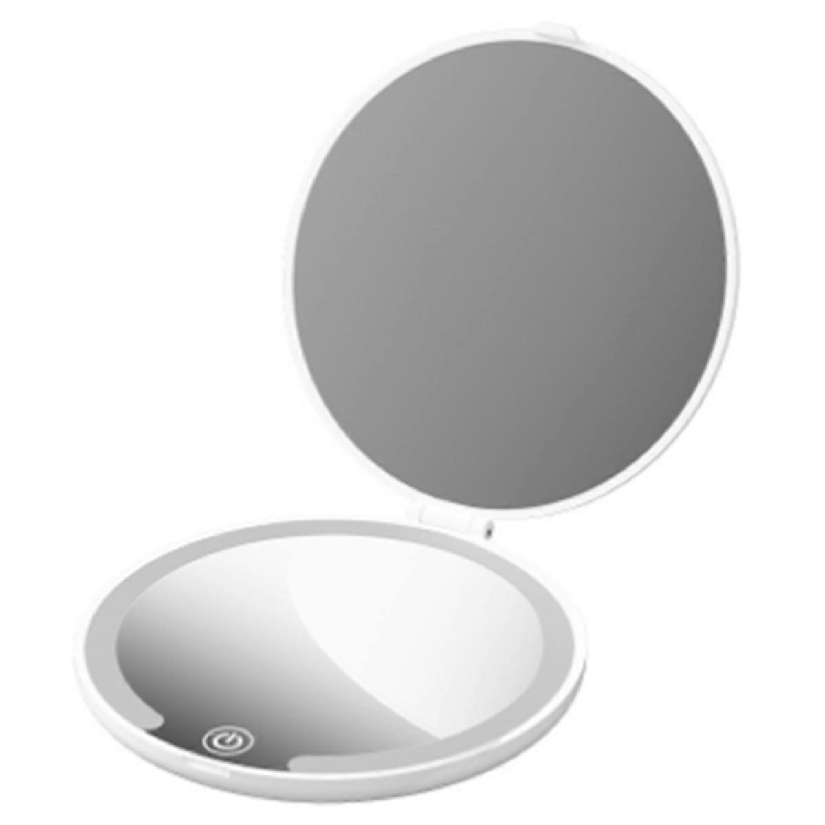 Travel Compact LED Makeup Mirror Rechargeable Small Foldable 3 Color Lighting Mirrors Built-in Battery 600 Mah