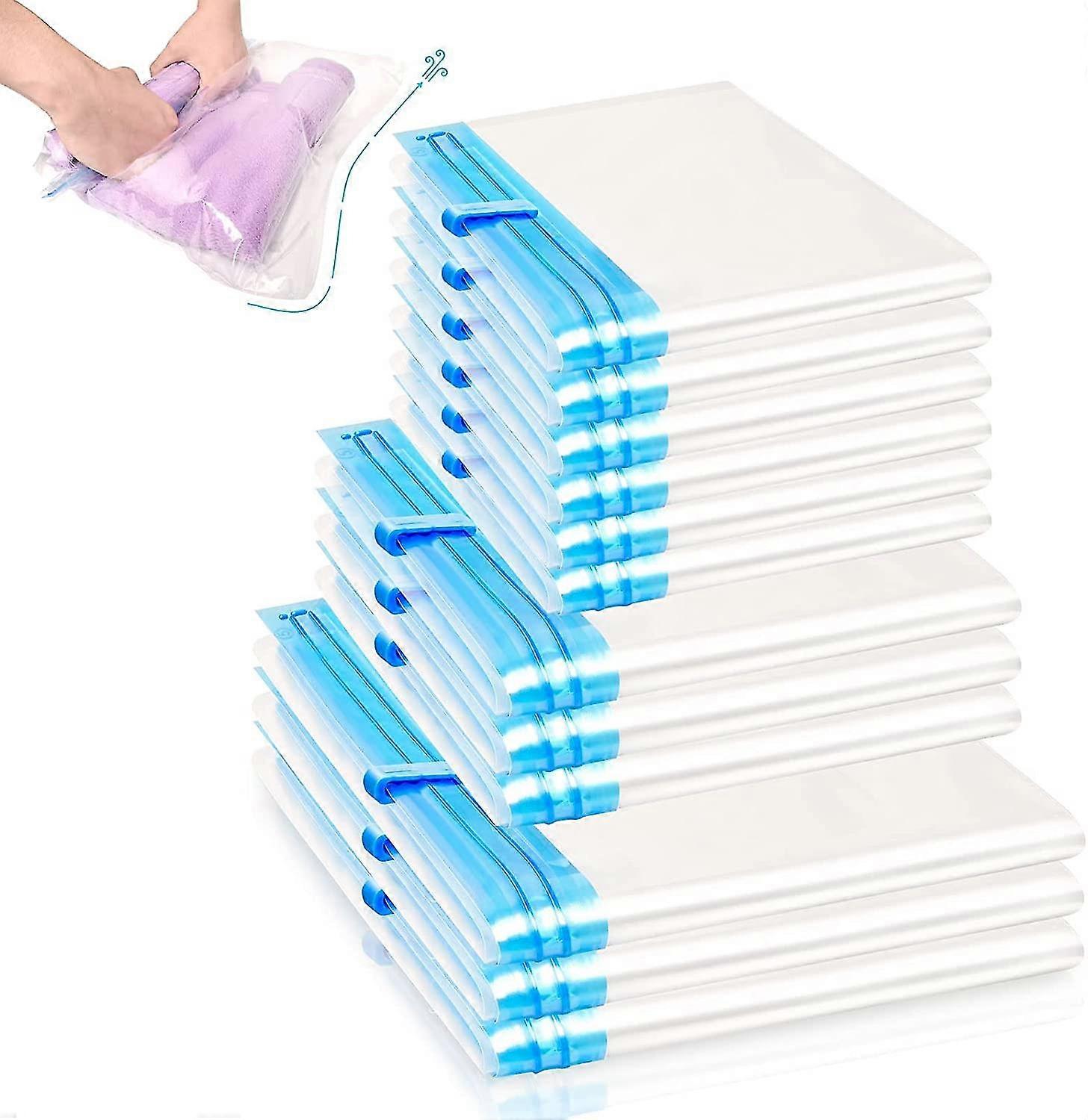 Compression Bags For Travel - 14 Pack Roll-up Space Saver Vacuum Storage Bags - No Vacuum Or Pump Needed - Reusable Vacuum Seal Bags For Clothing - 4