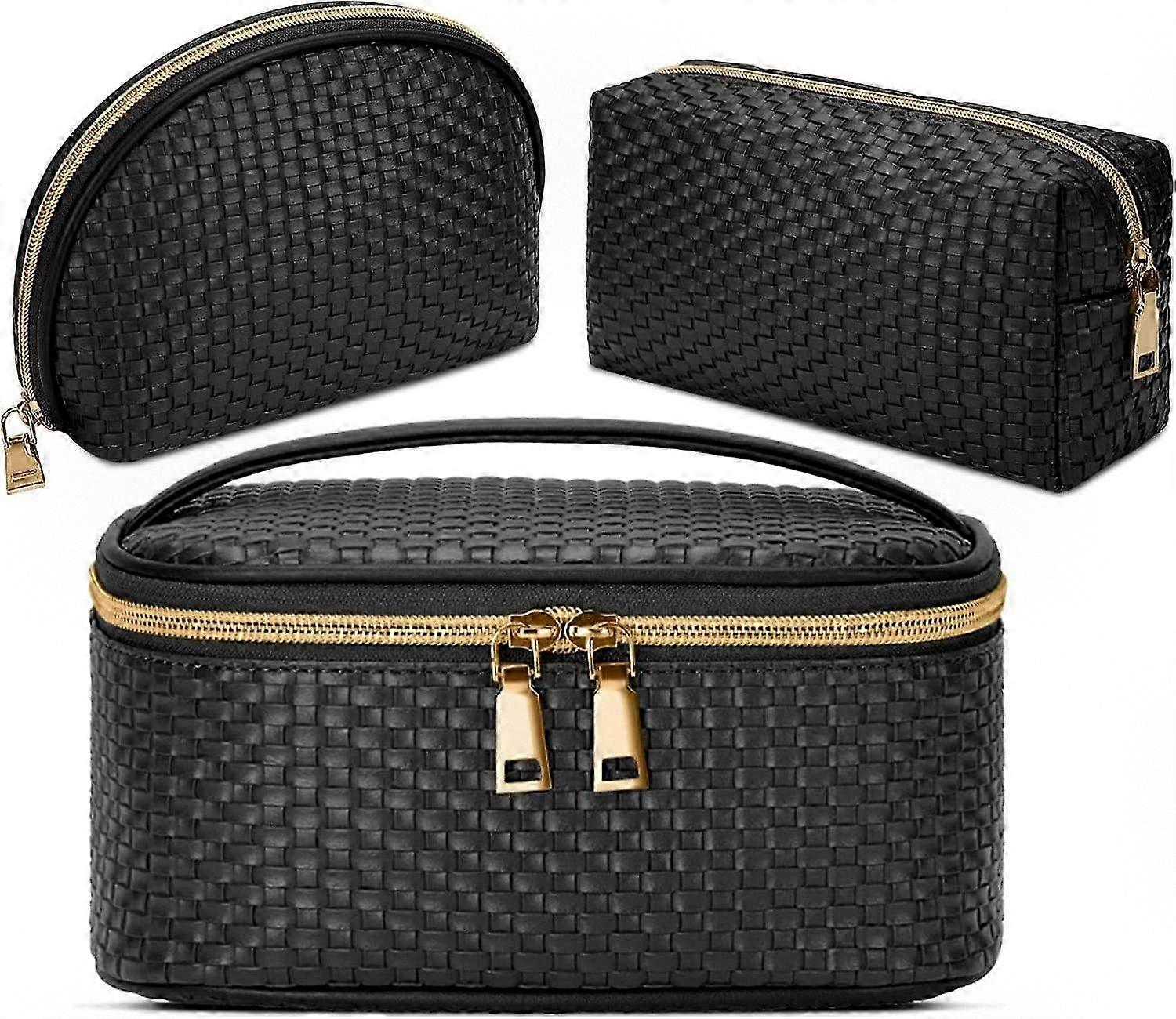 3-Piece Waterproof Makeup Pouch Set for Travel - Portable Cosmetic Organizer with Multiple Functions