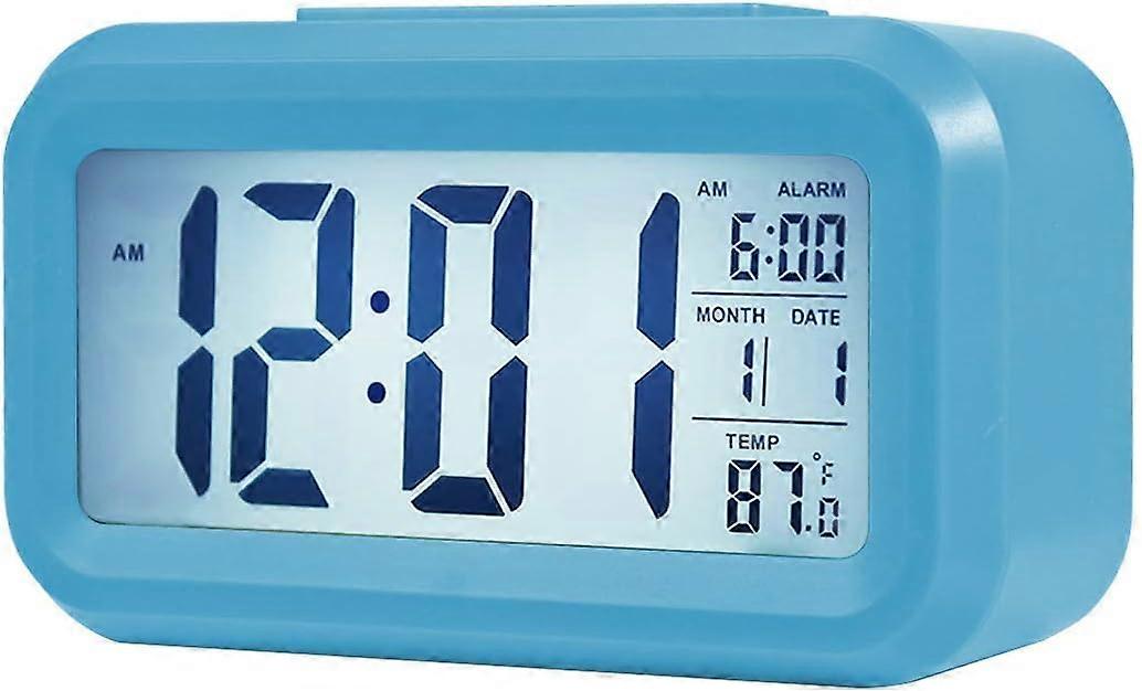 Travel Alarm Clock - Digital Clock with Large LCD Screen, Blue Backlight, Calendar, Snooze and Temperature Display - AC06 Blue
