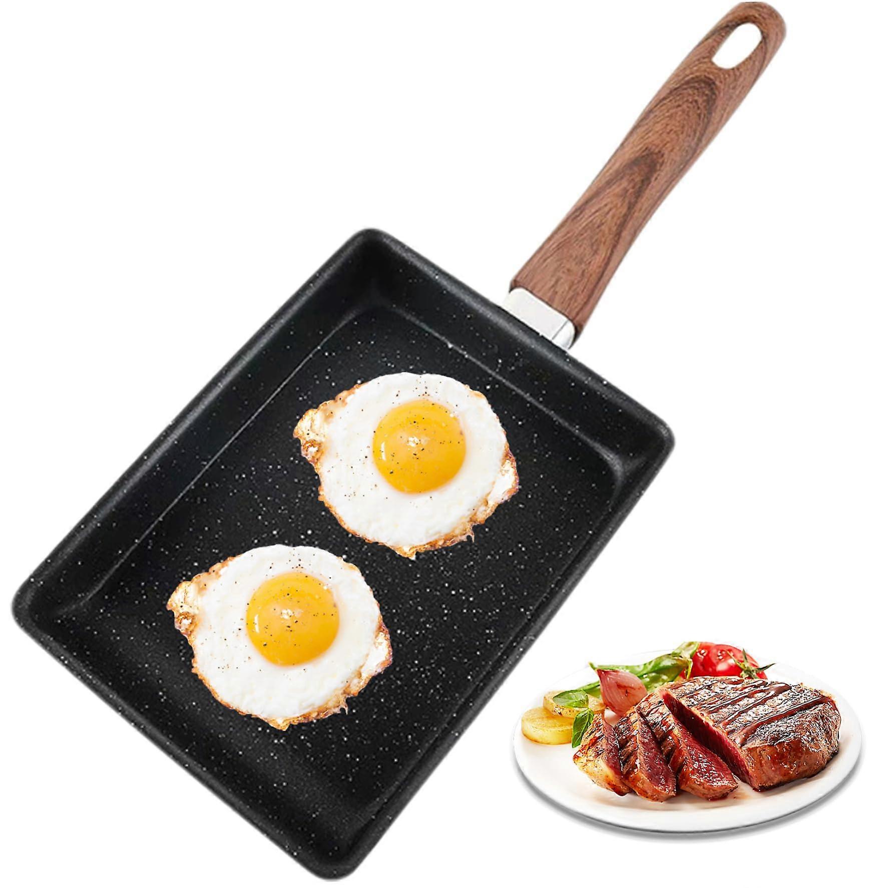 Japanese Omelette Pan, Square Fried Egg Pan, Omelette Non Stick, Egg Frying with Wooden Handle for Pancake, Crepe, Fried