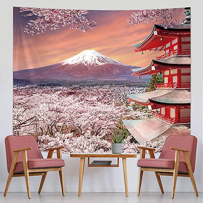 Japanese Wall Tapestry Asian Fuji Mountain Tapestry Japan Pagoda Wall Decor with Cherry Blossom Nature Art for Living Room Bedroom Dorm Wall (150*130c