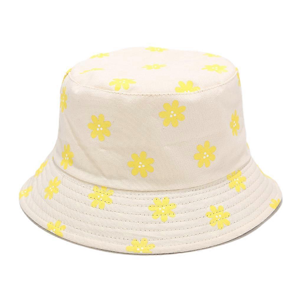 Japanese Unisex Cotton Bucket Hat Small Daisy Flower Print Reversible Bright Candy Color Beach Panama Fisherman Cap Beige