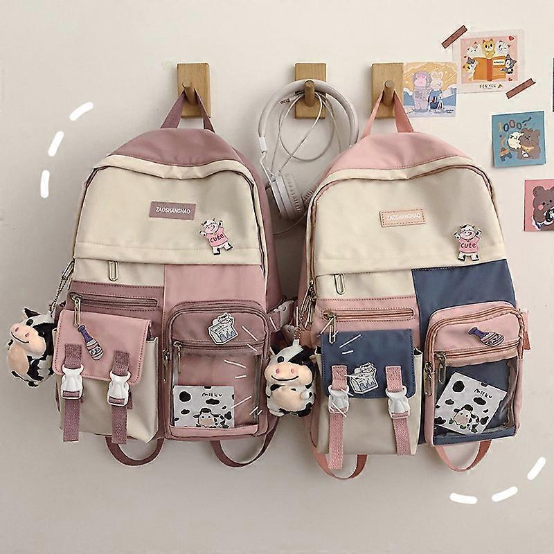 Charming Pink Pendant: The backpack includes a lovely pink pendant that enhances its overall charm. This unique accessory adds a touch of elegance and individuality, making it a must-have for fashion enthusiasts.