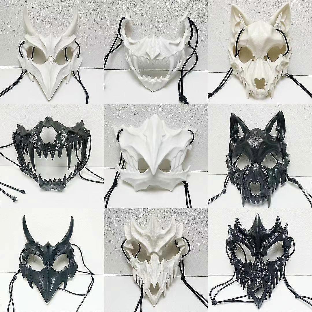 Japanese Anime Dragon God Skeleton Half Face Mask Cosplay Animal Unisex Halloween Masquerade Carnival Party Props