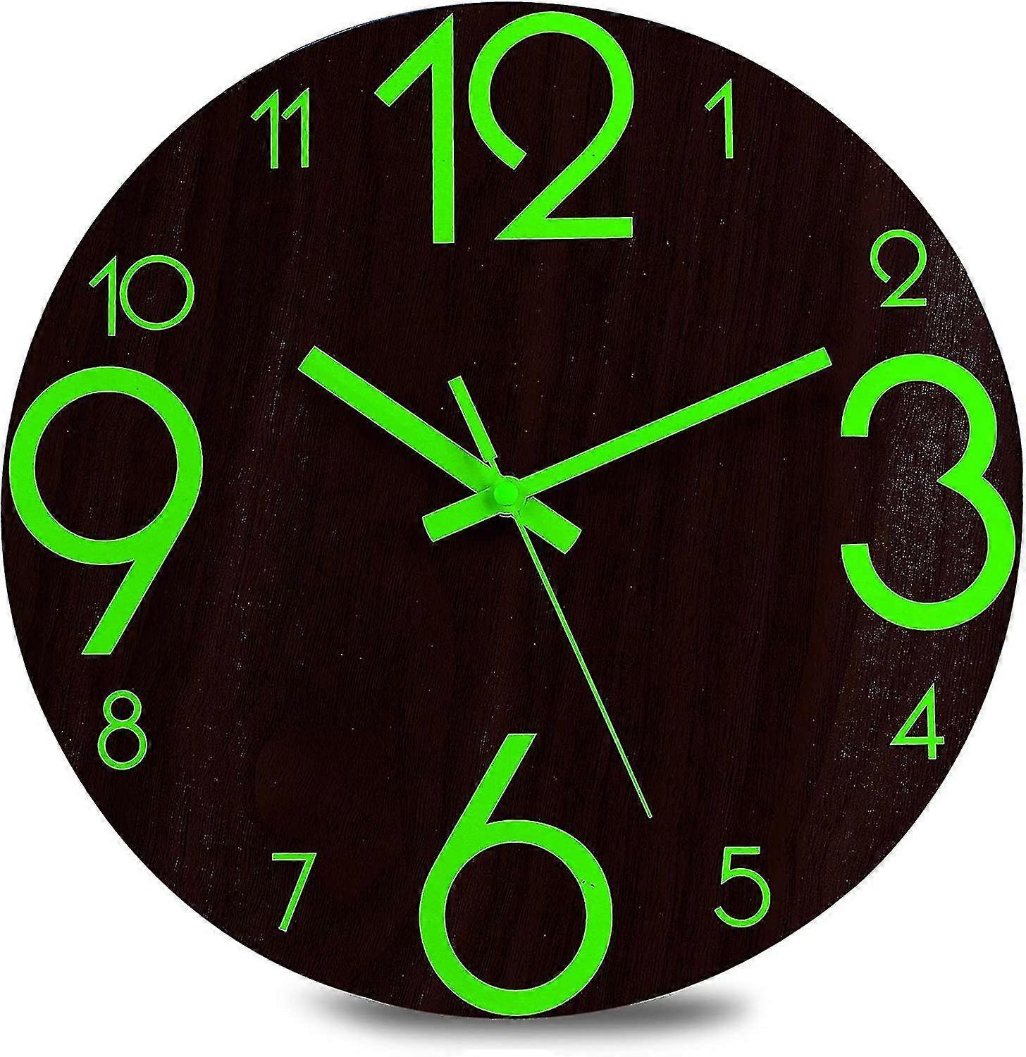 Luminous Wall Clocks - 12' Non-ticking Silent Wooden Clock With Lmell Night Light
