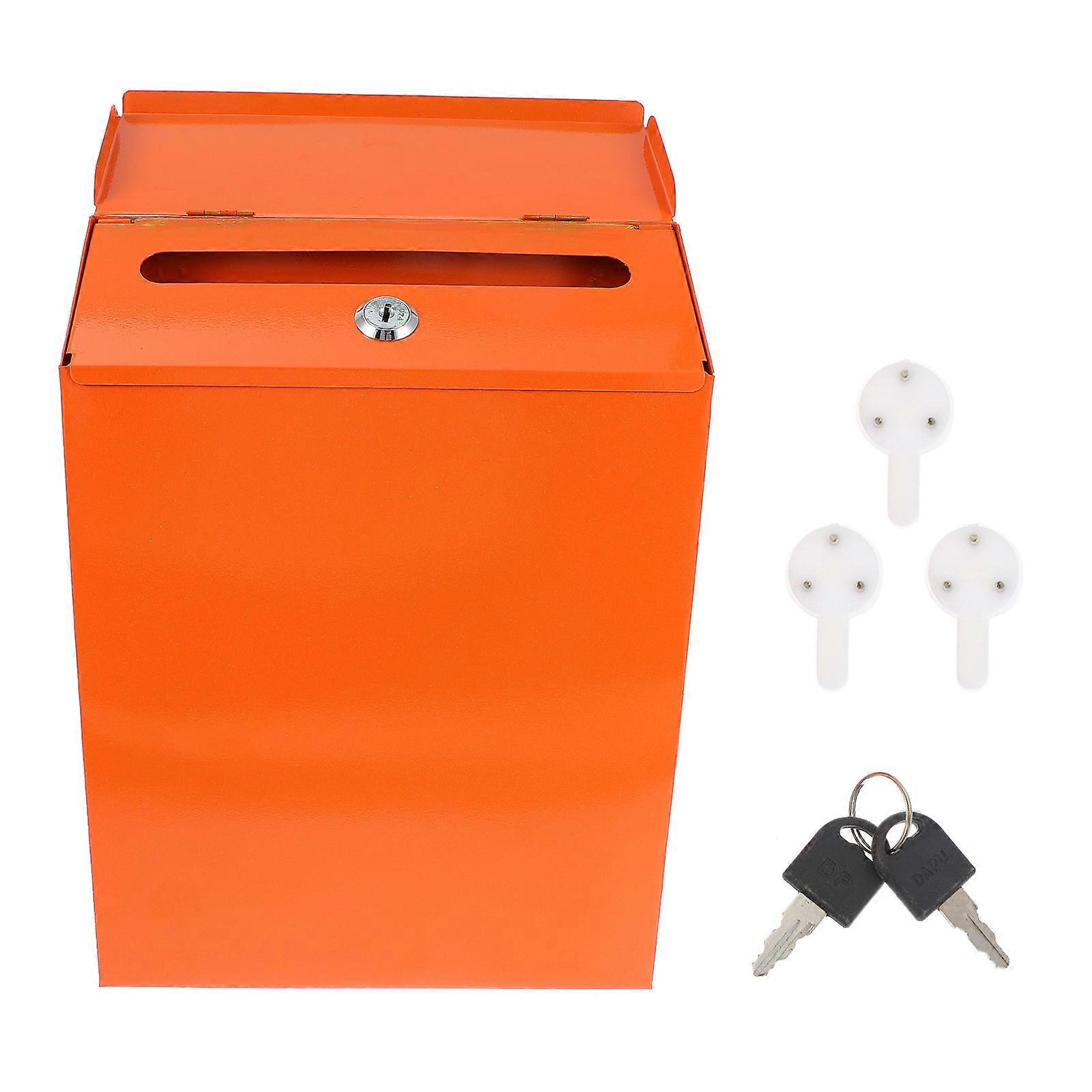 Made of iron material, the mailbox is durable with looking. The simple design makes it more unique and stylish. Suitable for storing envelopes, newspaper, letter of complaint or suggestion. The product is well polished and smooth surface does not hurt hands when used. Features -Color: Orange. -Material: Iron. -Size: About 30.00X22.50X6.50cm/11.79X8.84X2.55inch. -Made from iron material, safe and , not easy to rust and deform. -Can effectively help keep the confidential information of mail and complaint suggestion. -With a large storage capacity, you can put many mails and letters what you need. -Widely used for office, factory, school, front yard, security room, office building, etc. -The appearance design of the product is simple and generous, with pretty color. Package list: 1 x mailbox 2 x keys 3 x non-trace nails