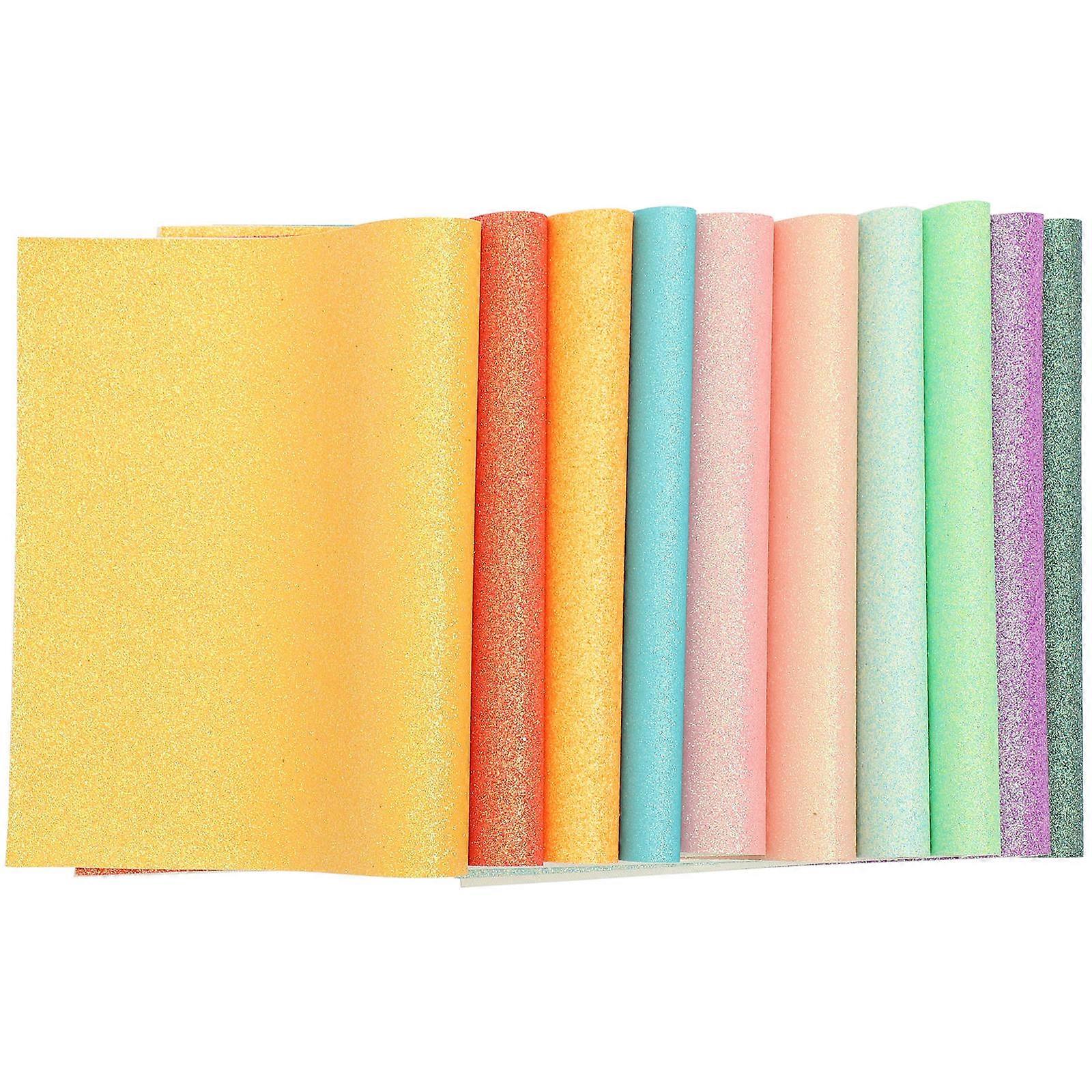 This product is a set of DIY faux leather fabric, which is made of sturdy PU leather material. With glitter design, they can be used for decorations, bags, , cushions, bows, earrings, and other handicrafts. You deserve to have them for DIY use. Features -Color:Assorted Color -Material:PU leather -Size:33.00X20.00X0.10cm/12.97X7.86X0.04in - The glitter PU leather sheets can be used for all kinds of DIY jewelry, handbags, hats, hair accessories, etc. - It can be cut and spliced at will for easy to use and DIY, which can provide a better using experience. - Our faux leather is designed with bright colors and delicate glitter design that can attract people's attention and interest. - It can be easily cut into small pieces without abrasion, which can meet the needs of DIY process. - There are different colors of glitter leather sheets that can meet your different kinds of needs. Package list: 10 × Glitter Leather Sheets