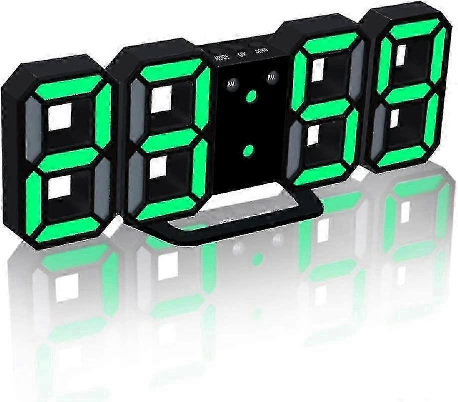 3D LED Digital Alarm Clock with Adjustable Brightness, Snooze, Nightlight - Green