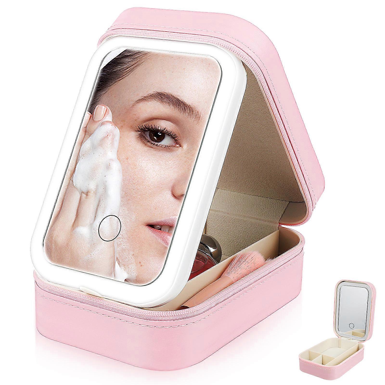Lighted Makeup Bag with Adjustable Brightness Mirror, Portable Cosmetic Organizer for Travel, Rechargeable LED Vanity Mirror with Sturdy Construction