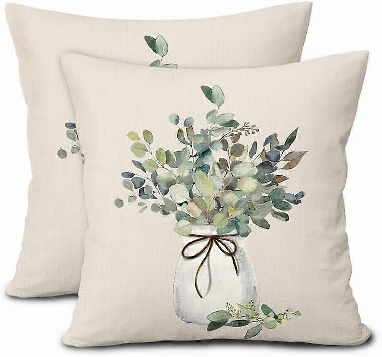 Spring Summer Leaf Pillow Covers 16X16 Inch Watercolor Eucalyptus Leaves Couch Pillow Cases Sage Green Farmhouse Throw Pillows Set of 2 Home Decor for