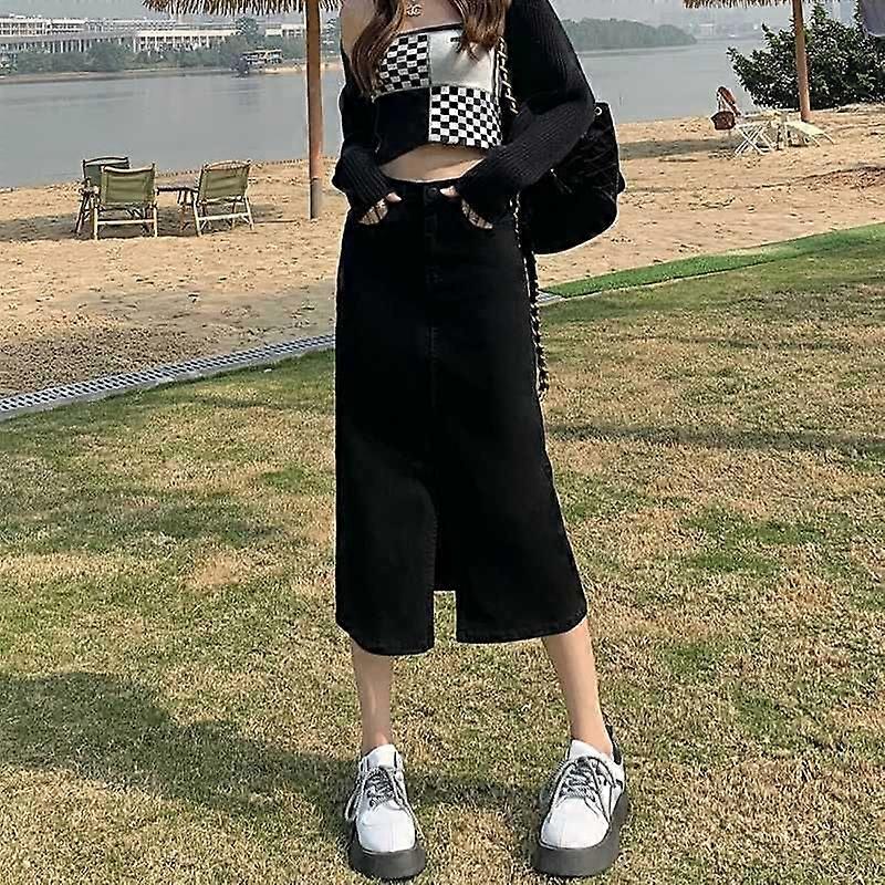 High-Waisted Split Denim Skirt For Women In Spring And Summer Long Cover Hip A Word Small Package Hip Skirt