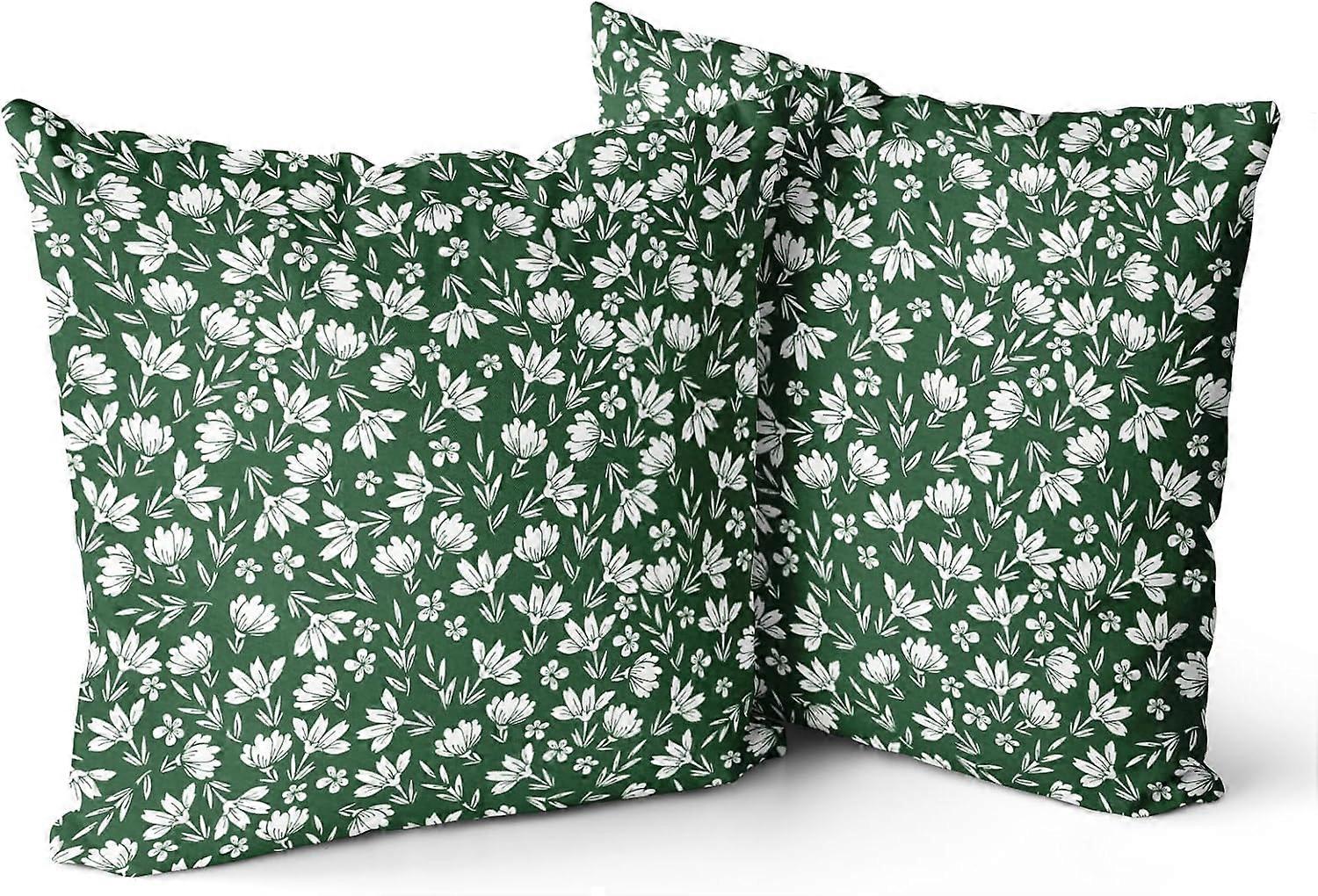 Spring Sage Green Pillow Covers 20x20 Set of 2 Floral Rustic Old Style Cute Flower Print Decorative Outdoor Pillowcases Seasonal Farmhouse Throw Cushi