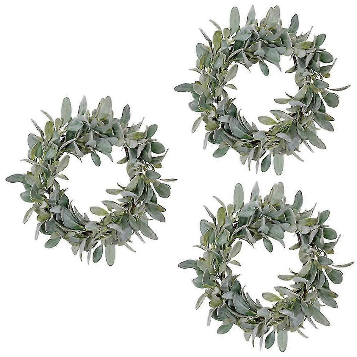3 Pcs Spring Flocked Lambs Ear Wreath, Year Round Everyday Foliage Wreath on Grapevine Base with Gr