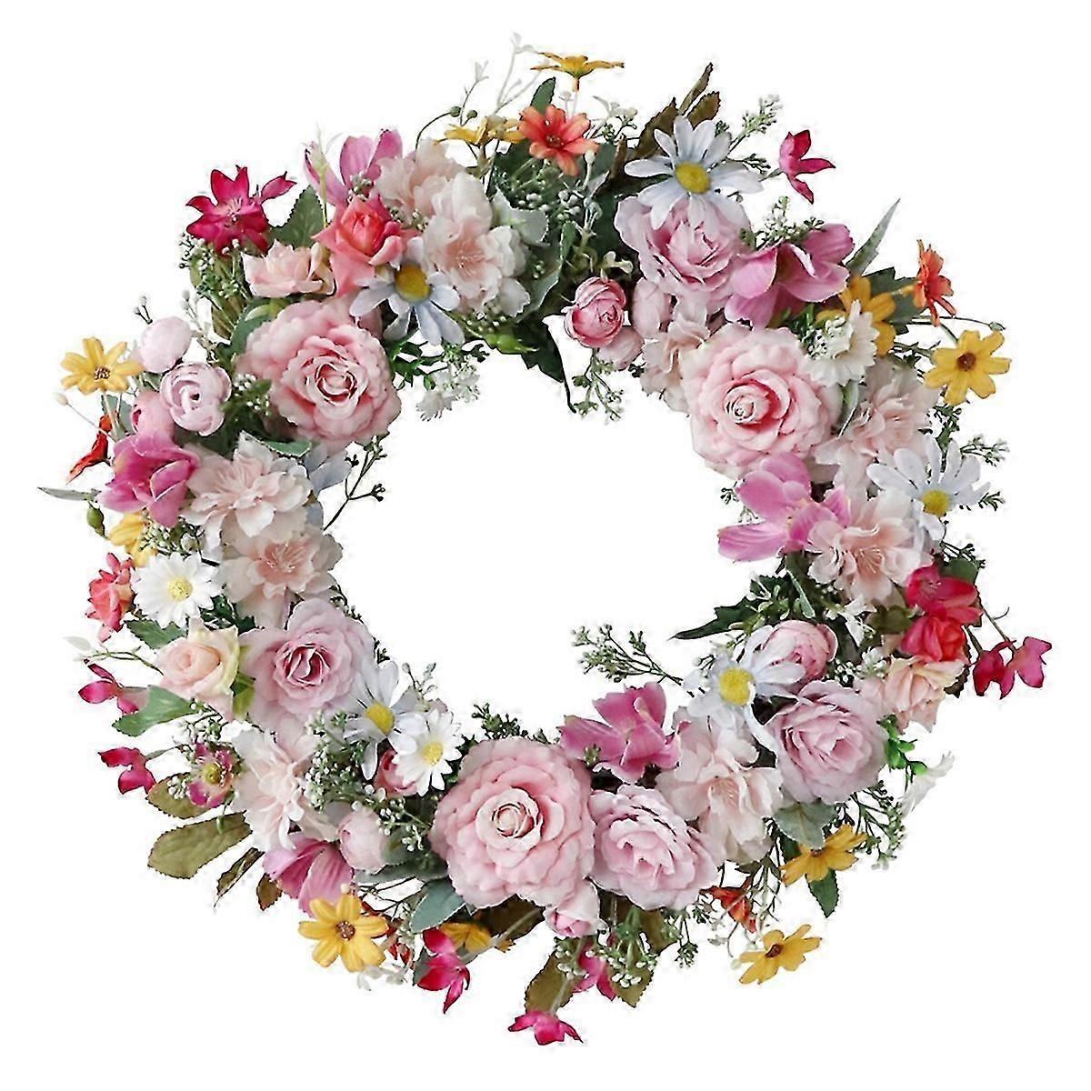 Spring Artificial Daisy Lavender Wreath Wildflower Summer Silk Wreaths for Front Door Home Wall Wedd