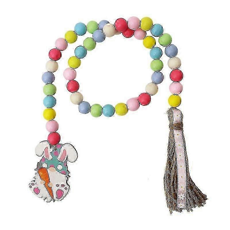 Spring Wooden Beads Garland With Tassels Easter Bunny Tag Farmhouse Rustic Tiered Tray Decorations Holiday Country Prayer Boho Bead Shelf Decor