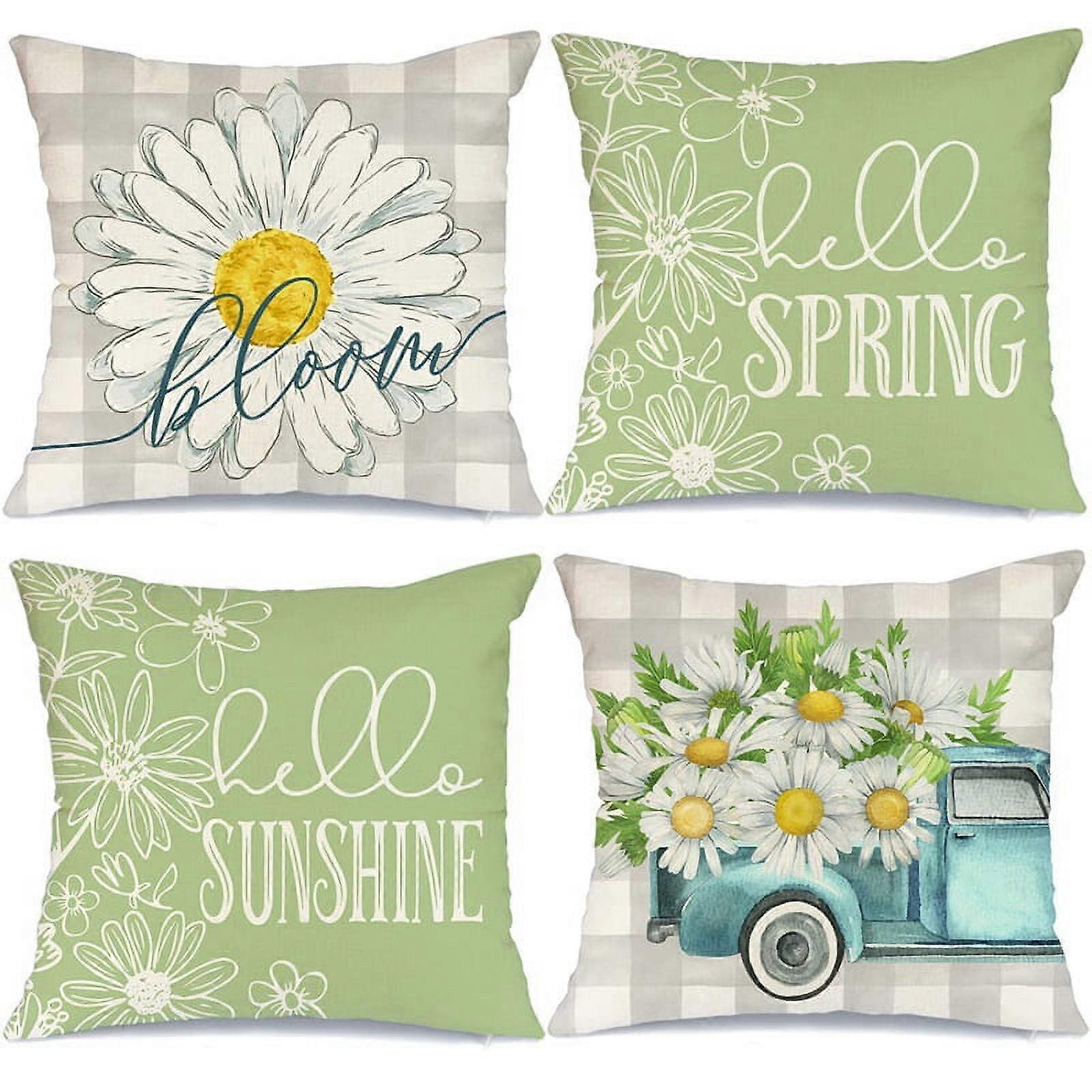Spring Pillow Covers 18X18 4 Spring Decorations Farmhouse Throw Pillow Home Sofa Decor Cushion Case