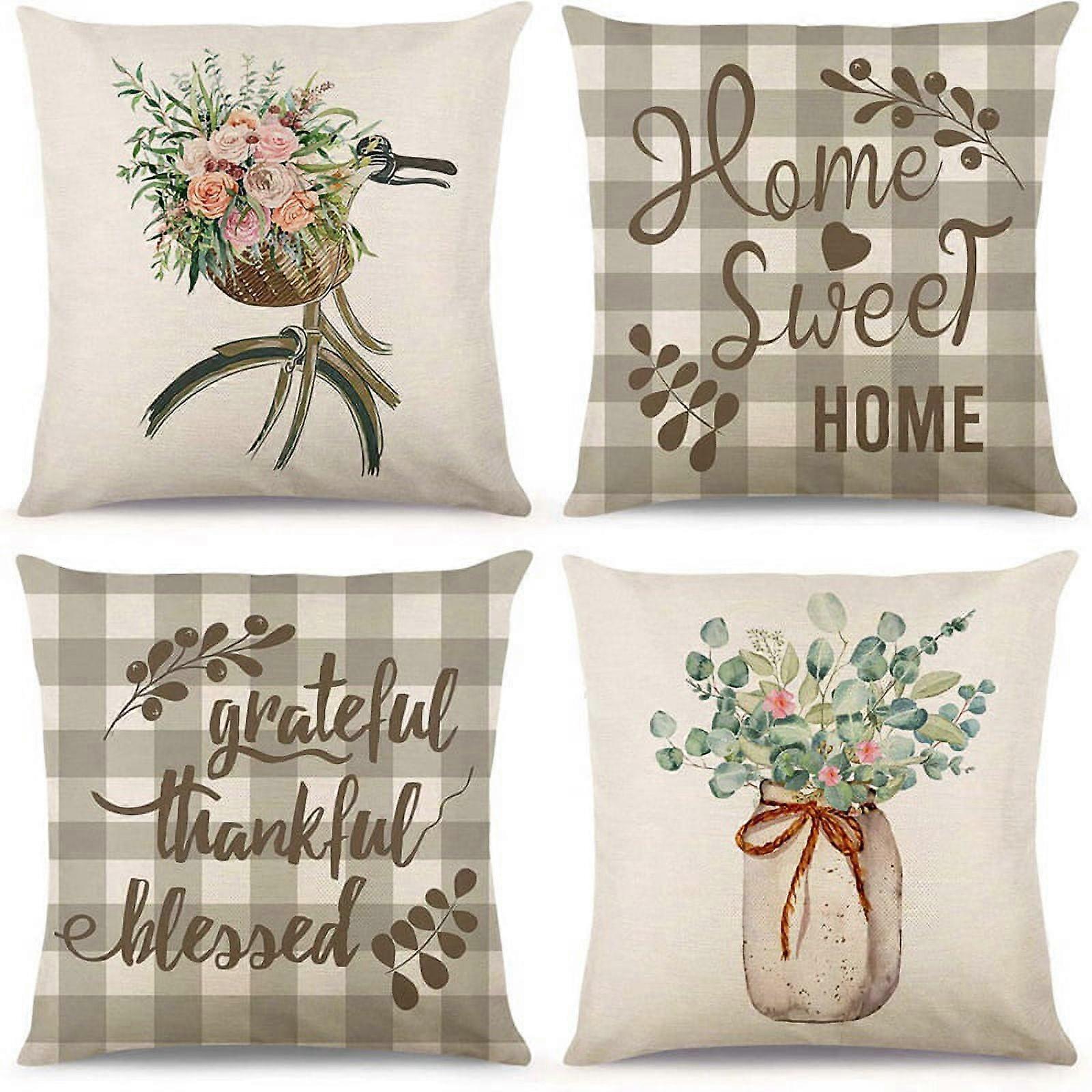 Spring Pillow Covers 18X18 Set Of 4 Spring Decorations Eucalyptus Farmhouse Throw Pillow Home Sofa Decor Cushion Case