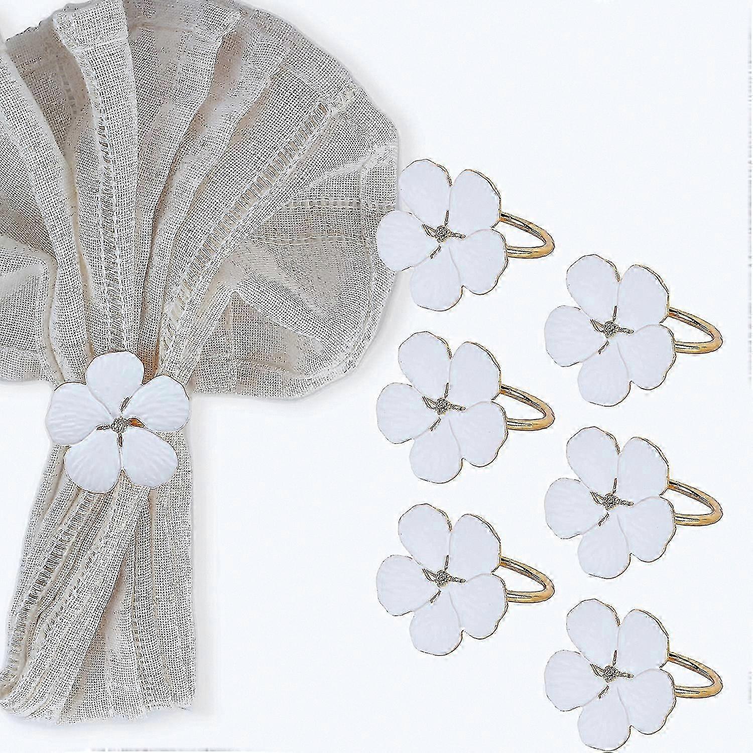 Set of 6 Gold Napkin Rings with Spring Flower and White Pansy Design