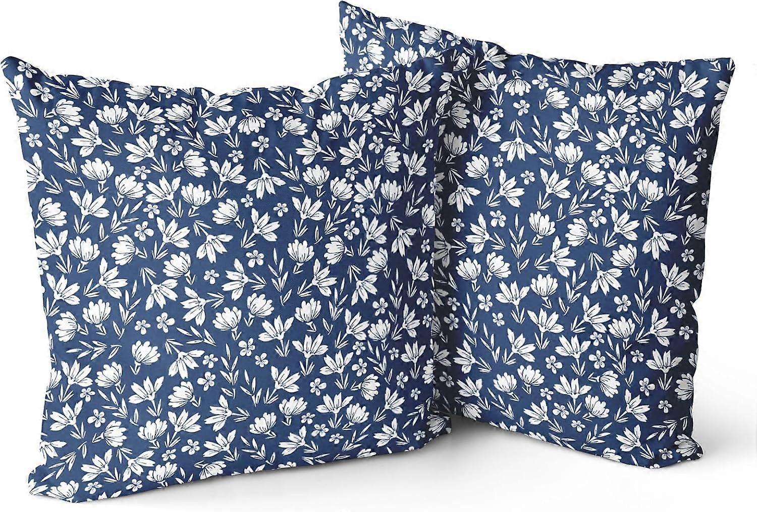 Spring Flower Pillow Covers 18x18 Set of 2 Rustic Cute Small Floral Navy Blue Cream Decorative Throw Pillows Outdoor PillowCase Farmhouse Velvet Cushi