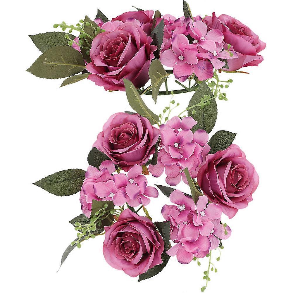 Spring Wreath Simulation Rose Wreath Wedding Decor Banquet Table Centerpiece Purple Circular 20x20x8cm 2Pack