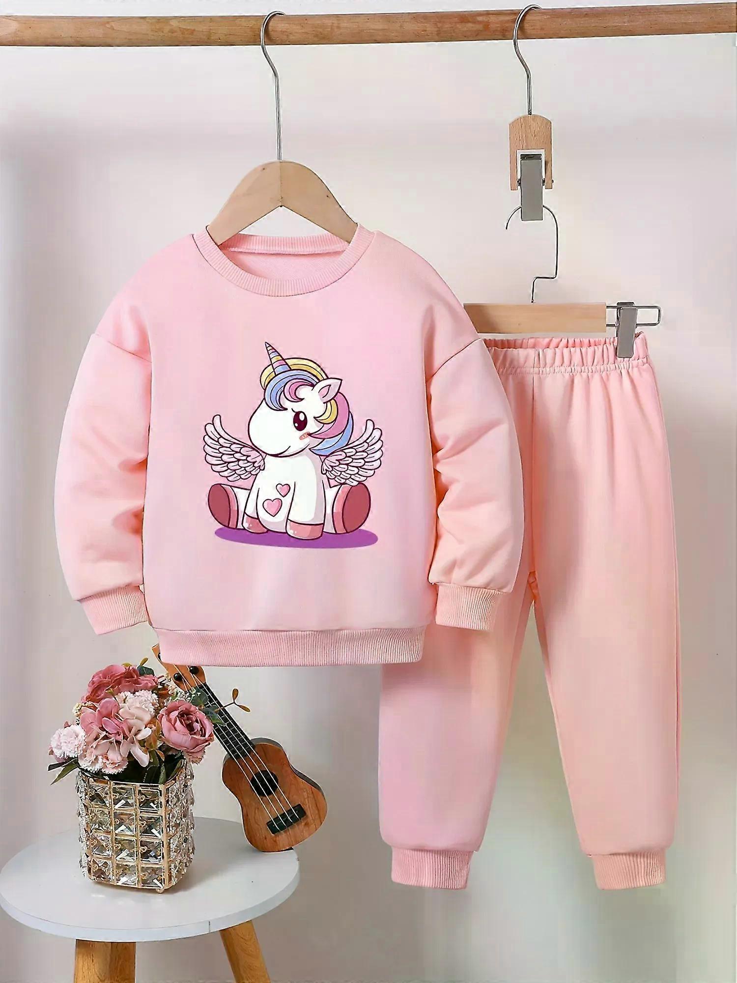 Spring Baby Girls Clothes Set Kid Cartoon Unicorn Printed Sweatshirts Pullover Top and Pants 2 Pieces Suit Children Tracksuits