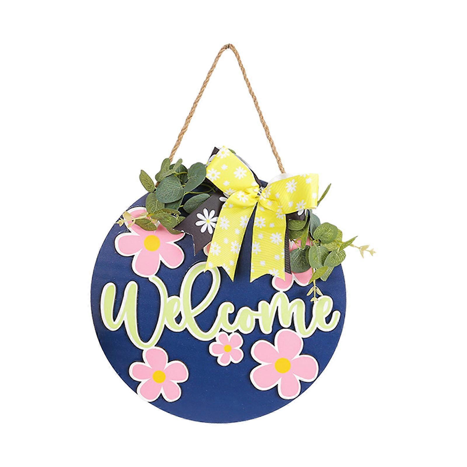 Spring Welcome Wooden Hanging Sign Round for Cafe Window Indoor Outdoor