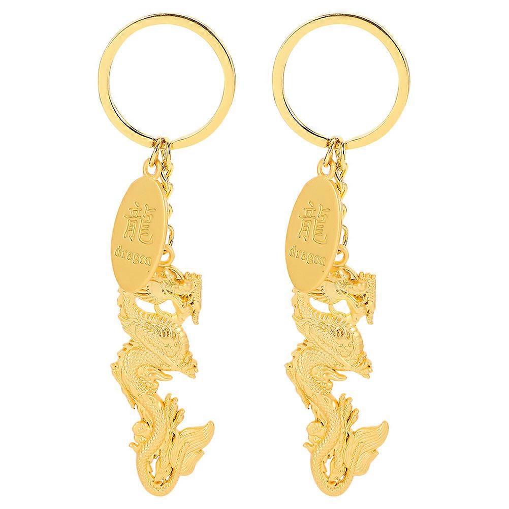 Spring Festival Pendants Dragon Shape Keychain Golden Metal Chinese New Year present 2Pcs
