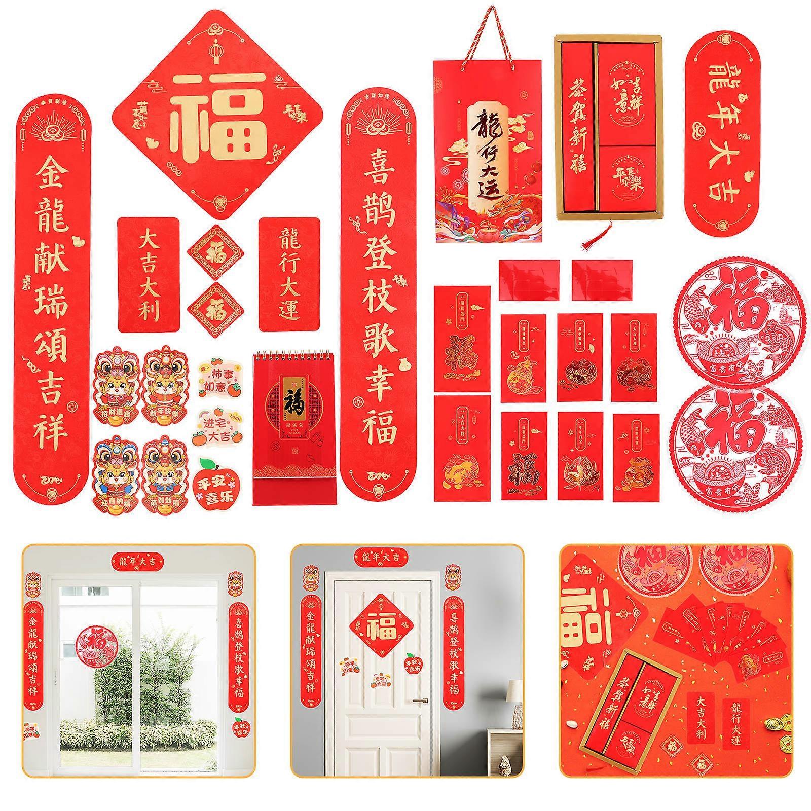 Spring Festival Chinese Couplet Decorations Traditional Style Magnetic Red 1Set