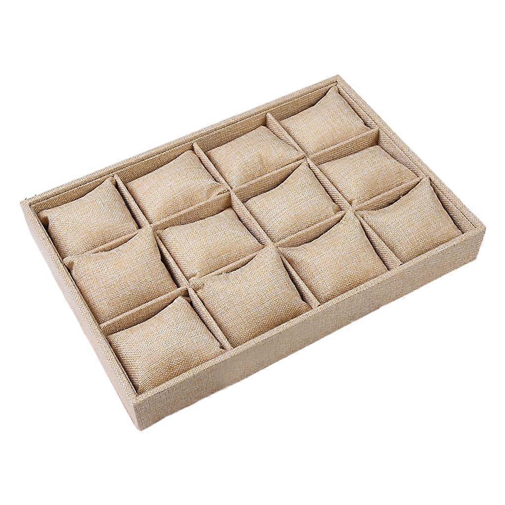 Watch Jewelry Tray Organizer Bracelet Display Showcase 12 Grid Pillows Without Lid Tray Jewelry Storage Holder Gifts for Men Women Girls