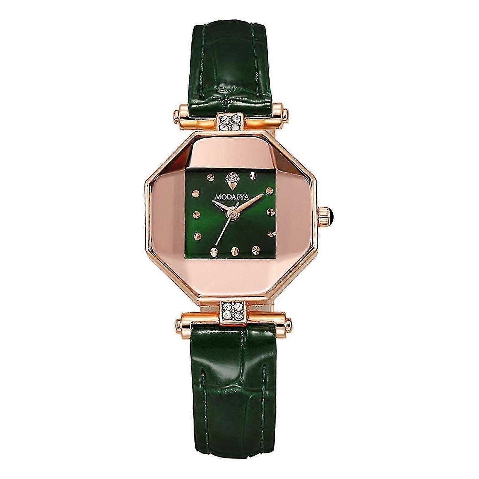 Watch Octagonal Adjustable Faux Leather Strap Rhinestone 3 Hand Quartz Movement Elegant Gift Fashion Jewelry Ladies Dress Wristwatch