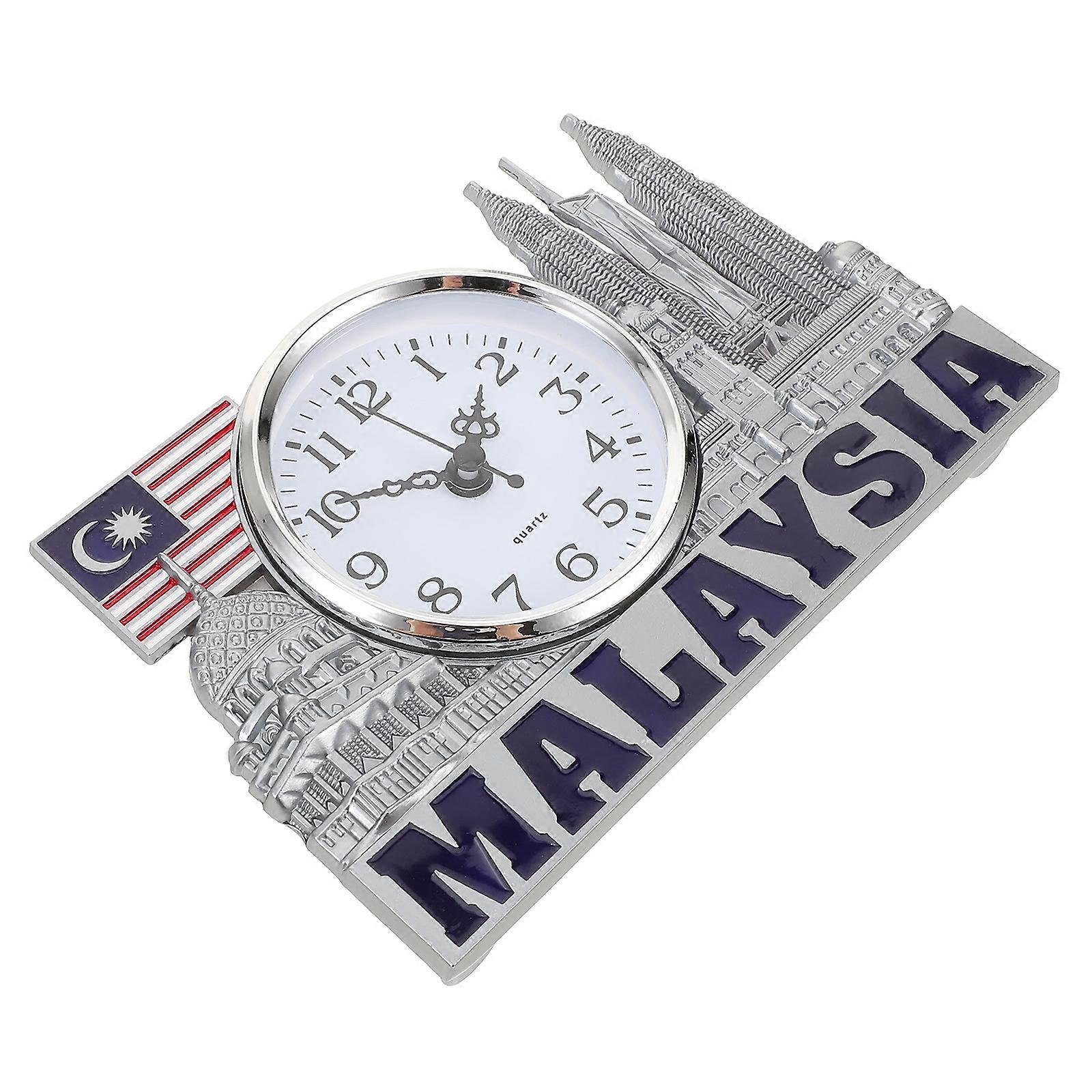 Clock Decor Twin Tower Statue Timekeeping Home Decor Silver 16.00X11.00X2.50CM Zinc Alloy Desktop Clock 1Pcs