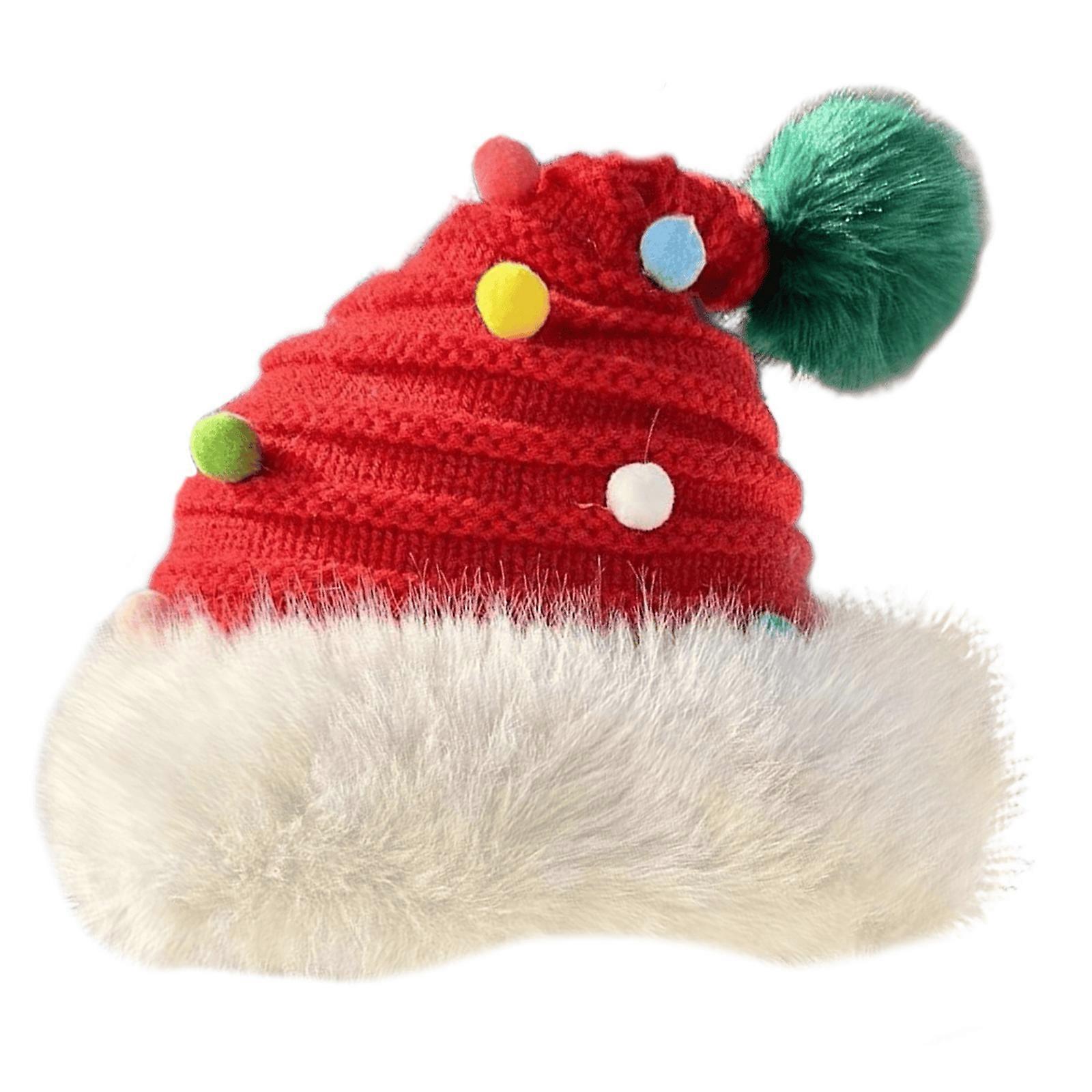 Warm Christmas Santa Hats Thicken Knitted Headgear Knit Furry Brim Beanies for Christmas Parties Cosplay Accessories Red
