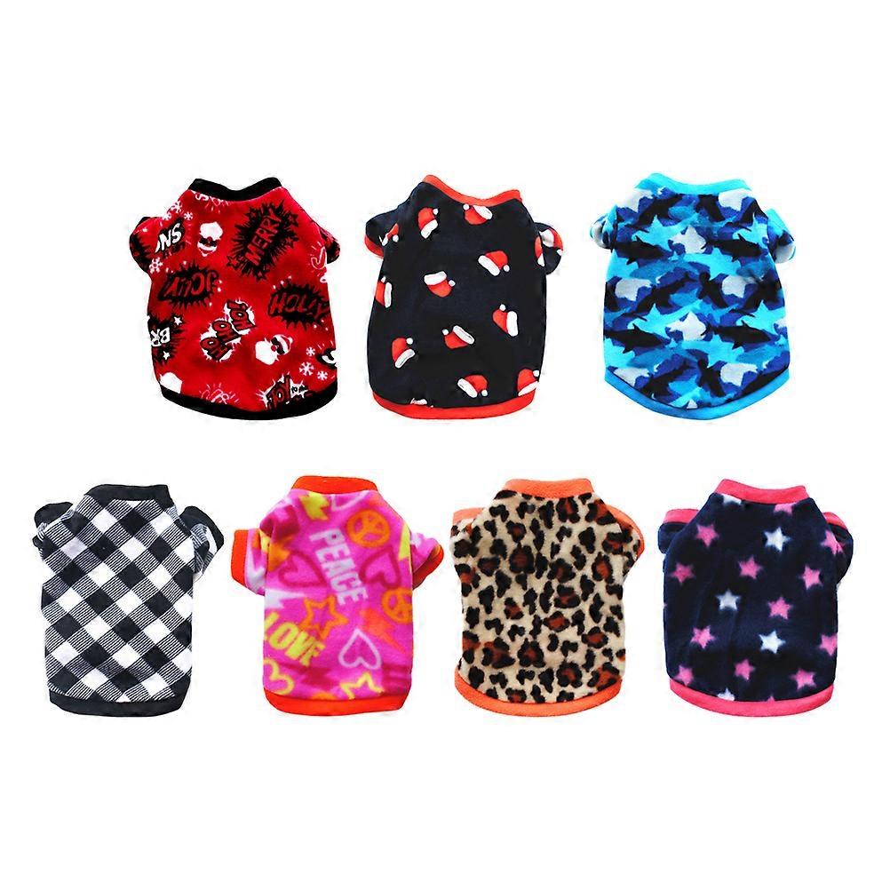 warm and fashionable in cold weather days. It is perfect for holiday, festival, everyday wear or photos. Made with quality material, which could provide super comfortable feeling to your pet, keep you four-leg friends warm in the autumn and winter. Features - Material: Polar fleece. - Size XS: length: 21cm/8.27inch; bust: 31cm/12.2inch; neck circumference: 16cm/6.3inch. - Size S: length: 25cm/9.84inch; bust: 35cm/13.78inch; neck circumference: 21cm/8.27inch. - Size : length: 31cm/12.2inch; bust: 46cm/18.11inch; neck circumference: 30cm/11.81inch. - Size L: length: 36cm/14.17inch; bust: 50/19.69inch; neck circumference: 34cm/13.39inch. - Very friendly to skin, make your dog feel more comfortable to play, rest and sleep when wearing this sweater. - Chic and stylish design, make your pet look more cool, lovely, charming and attractive. - Whether in outdoors, indoors or auto, our pet sweater always can keep the area tidy without any dog . - A nice present choice for pets, show them your love and concern, give them a little . - Keeps your pet throughout outdoor activity, great idea for clod days or winter. Package list: 7 x Pet Clothing