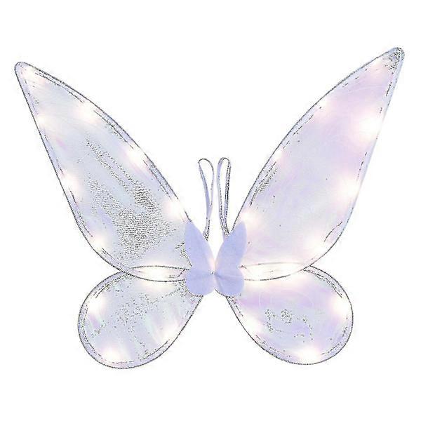 (Warm Light) Fairy Wings with Light Up Elf Wings Kids Adults Luminous Wings (White)