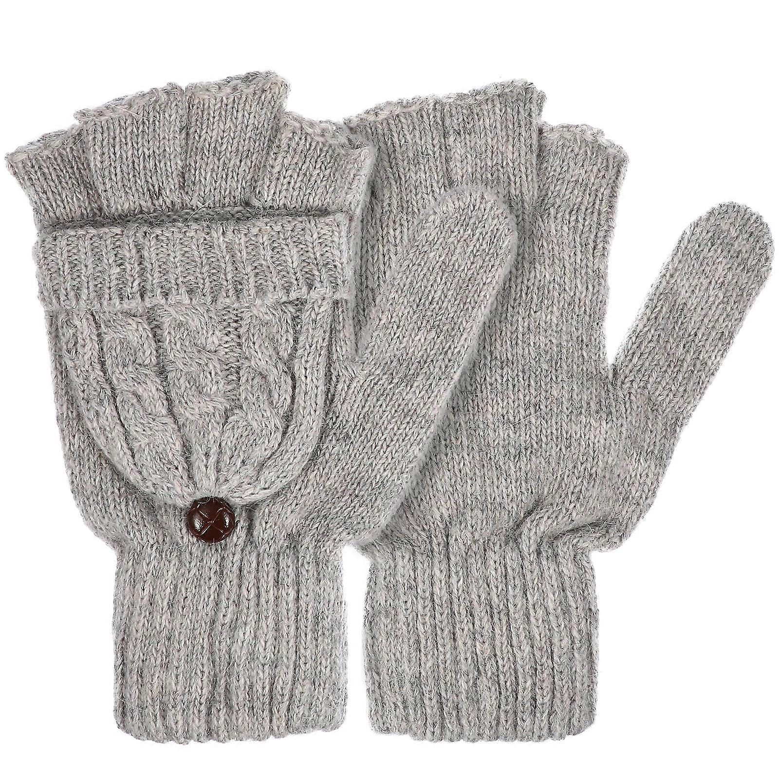 Warm Gloves Women Full Finger Winter Wear Grey Wool 1Pair