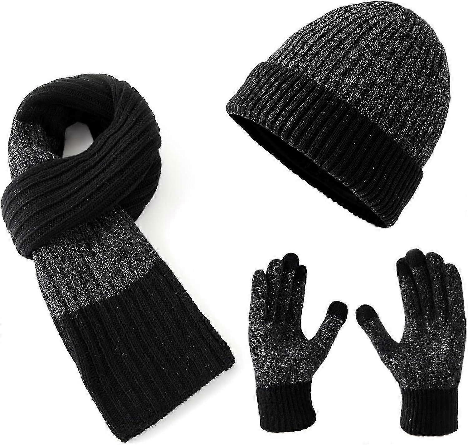 Warm and Cozy Lallier Winter Hat Scarf and Touchscreen Gloves Set for Men