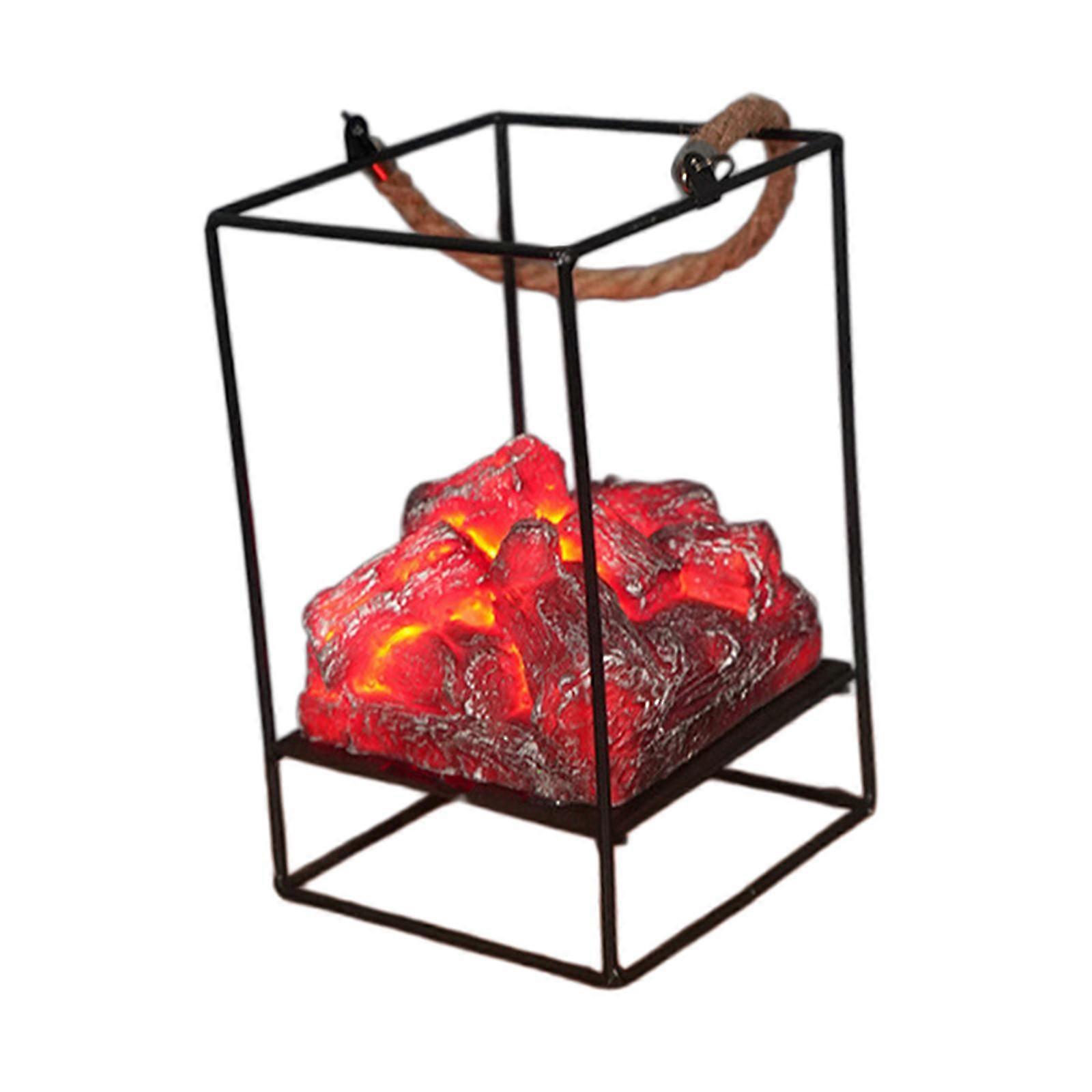 Fireplace Lantern Battery Powered Flameless LED Night Light Portable Antique