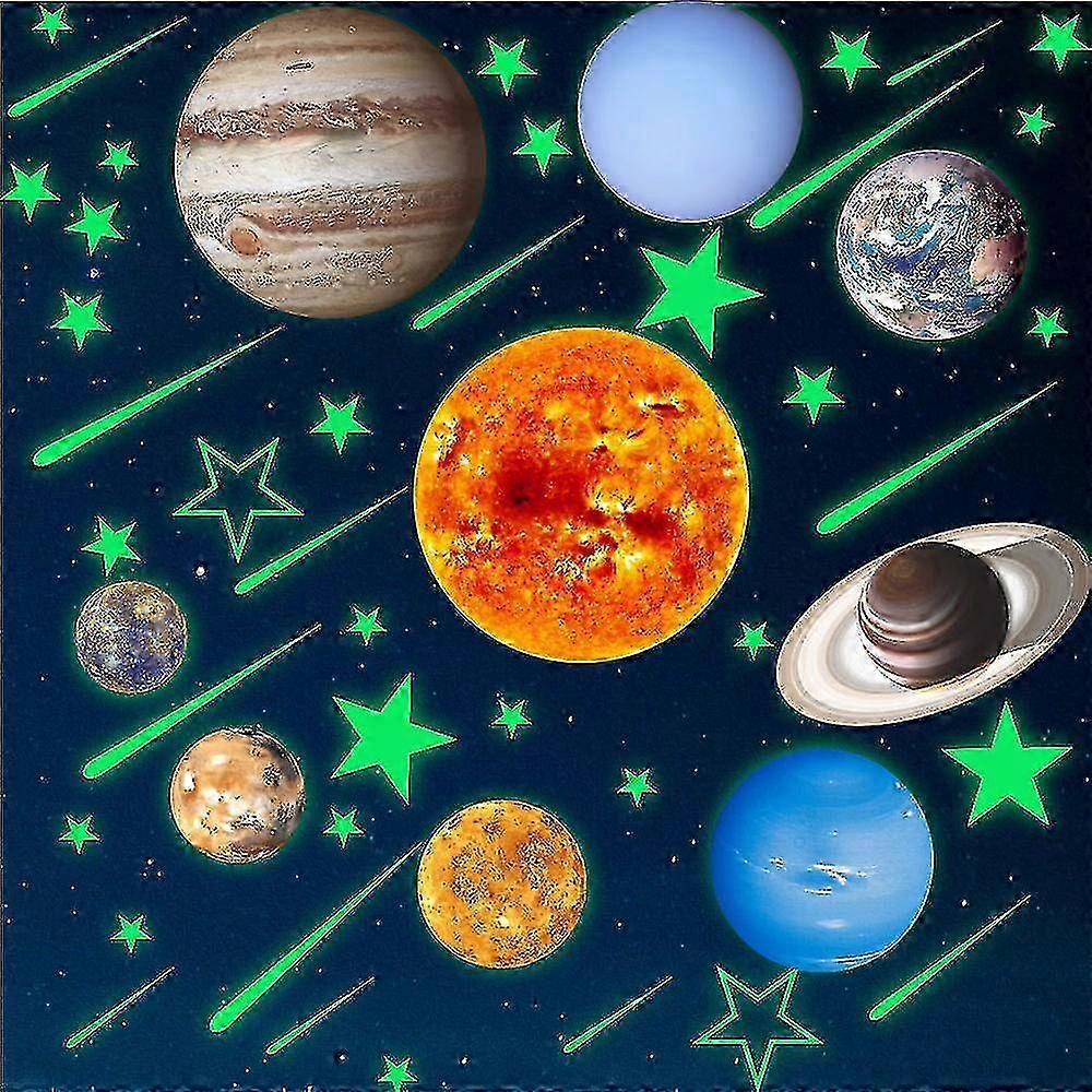 Glow In The Dark Stars And Planets Stickers, Fluorescent Luminous Adhesive Wall Decals For Nursery Kids Bedroom Decor