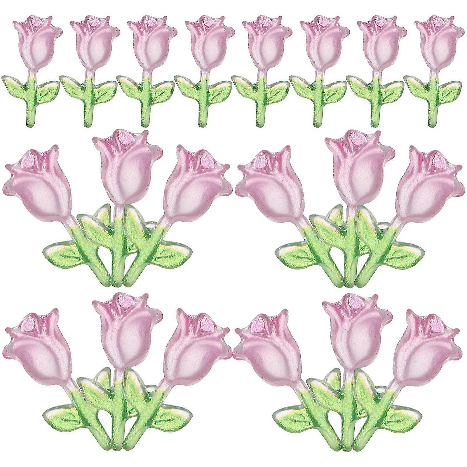 Glow in the Dark Tulip Nail Charms 30pcs Resin DIY Nail Decorations for Women, Durable Manicure Accessories for Party and Salon Use