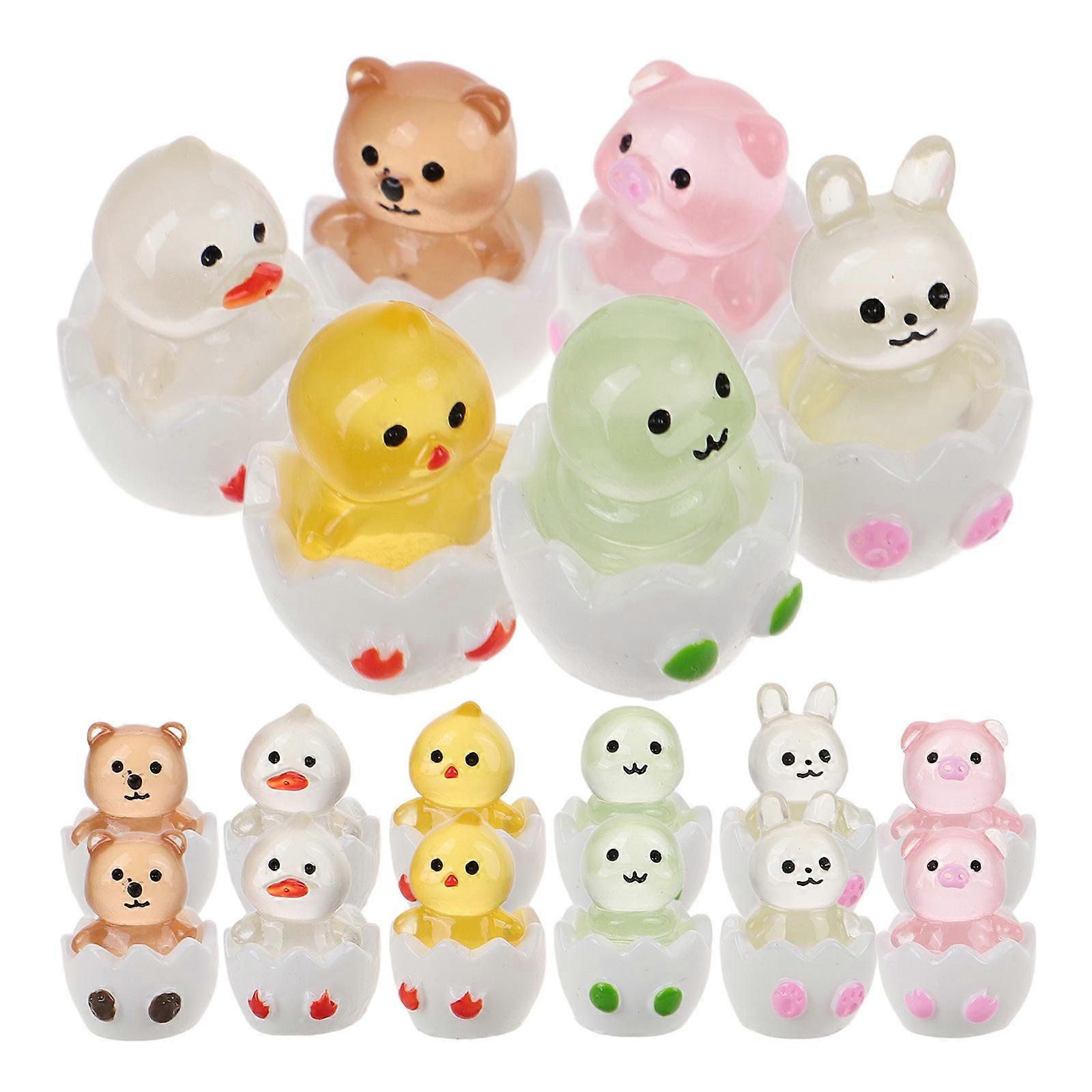 Glow in the Dark Mini Animal Figurines Resin Statues for Garden, Indoor Outdoor Decoration, 18PCS Luminous Micro Figurines for DIY Crafts